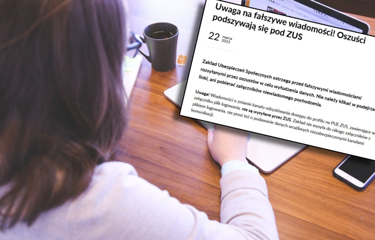 ZUS zaleca zachowanie szczególnej ostrożności w przypadku otrzymania wiadomości o podejrzanej treści, zwłaszcza informacji o rzekomych zmianach dokonanych na PUE ZUS przez klienta, który nie podejmował jakichkolwiek działań.