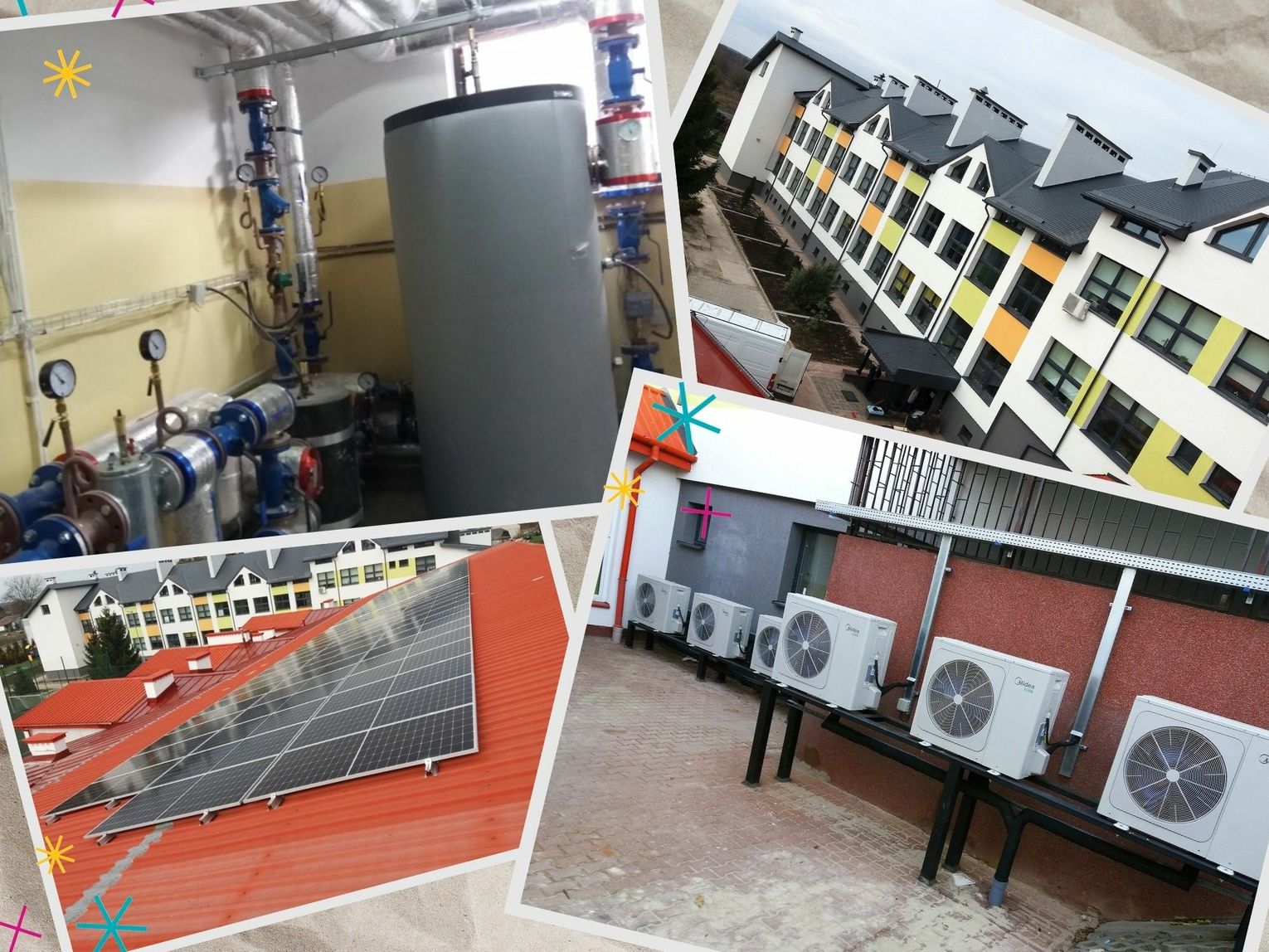 Przy okazji zmodernizowano instalację CO. Prace obejmowały: remont kotłowni, wymianę grzejników i montaż nowego pieca kondensacyjnego. Placówka została wyposażona w nowoczesne i ekologiczne rozwiązania, które mają obniżyć koszty jej utrzymania – oprawy oświetleniowe wykonane w technologii LED, fotowoltaikę i pompy ciepła.