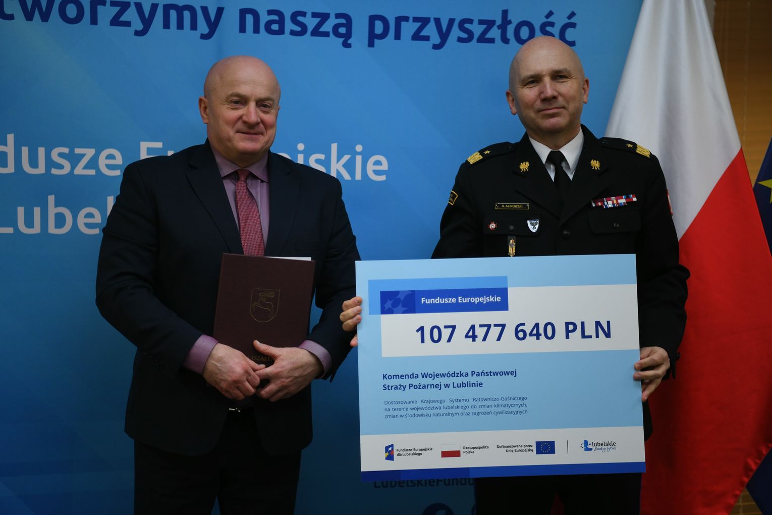 Realizacja projektu „Dostosowanie Krajowego Systemu Ratowniczo-Gaśniczego na terenie województwa lubelskiego do zmian klimatycznych” oszacowana została na ponad 130,5 mln zł, z czego prawie 107,5 mln zł pochodzić będzie z Funduszy Europejskich. Te pieniądze pozwolą wzmocnić przez zakup sprzętu zarówno jednostki Państwowej Straży Pożarnej, jak i Ochotniczej Straży Pożarnej wchodzące do Krajowego Systemu Ratowniczo-Gaśniczego. Lepszy sprzęt i zaplecze techniczne z pewnością pozytywnie przyczyni się do poprawy: