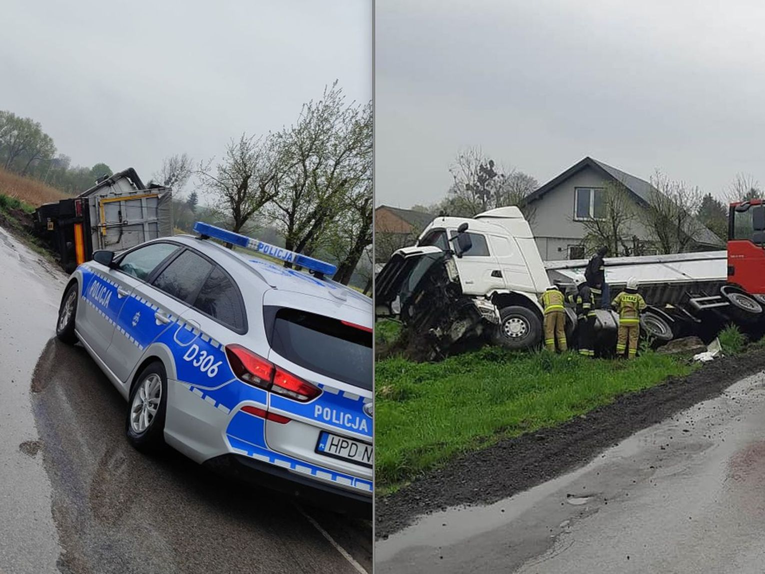 Działania strażaków z Krasnegostawu i druhów z Żółkiewki polegały na zabezpieczeniu miejsca zdarzenia. Utrudnienia z przejazdem mogą pojawić się podczas wyciągania ciężarówki i stawiania jej na koła.