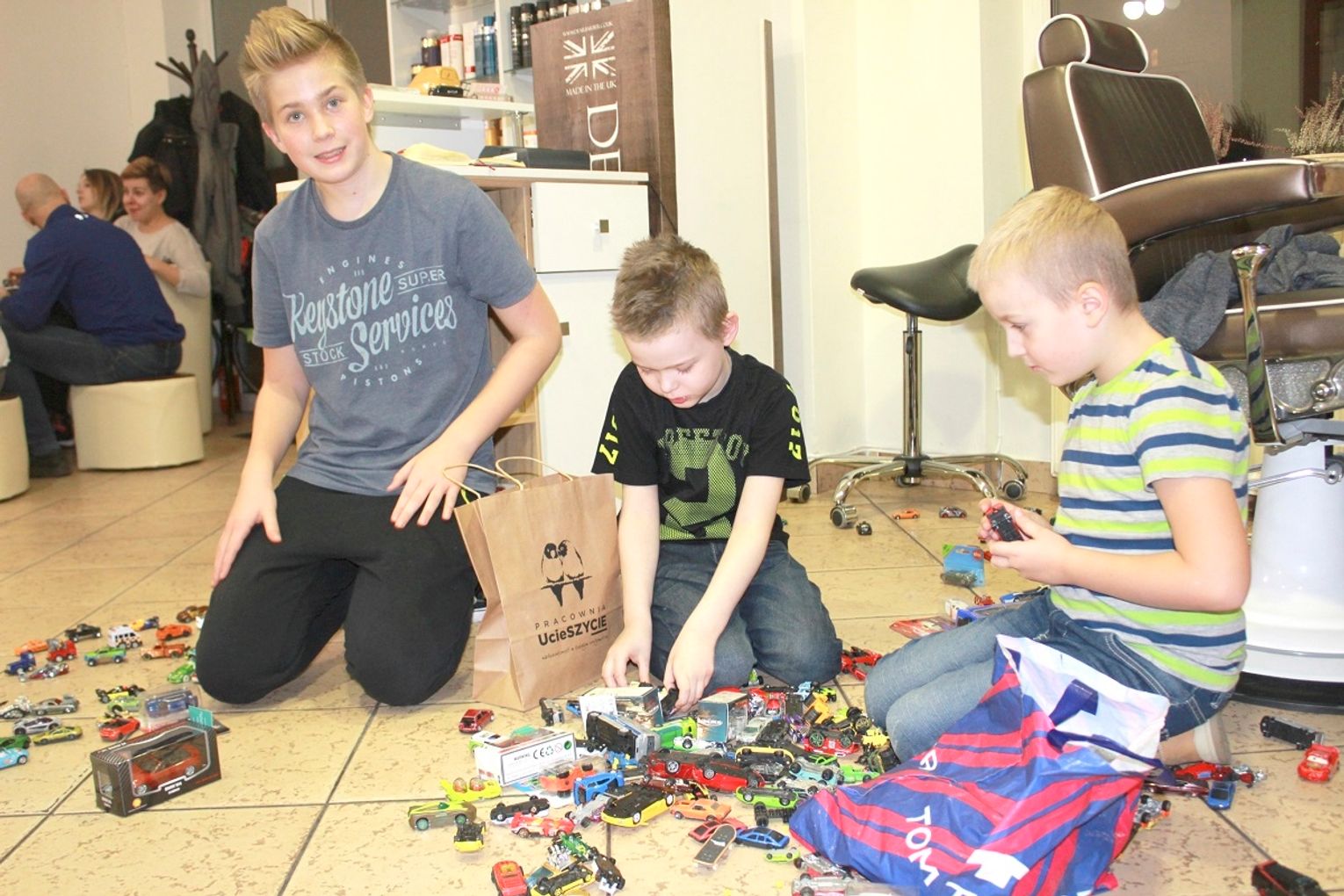Uroczyste wręczenie Oktawianowi zebranych samochodzików odbyło się w Studiu Fryzur-barber Lejdis&Dżentelmen. W spotkaniu wzięli udział partnerzy akcji oraz koledzy Oktawiana, którzy zainicjowali całe wydarzenie.
