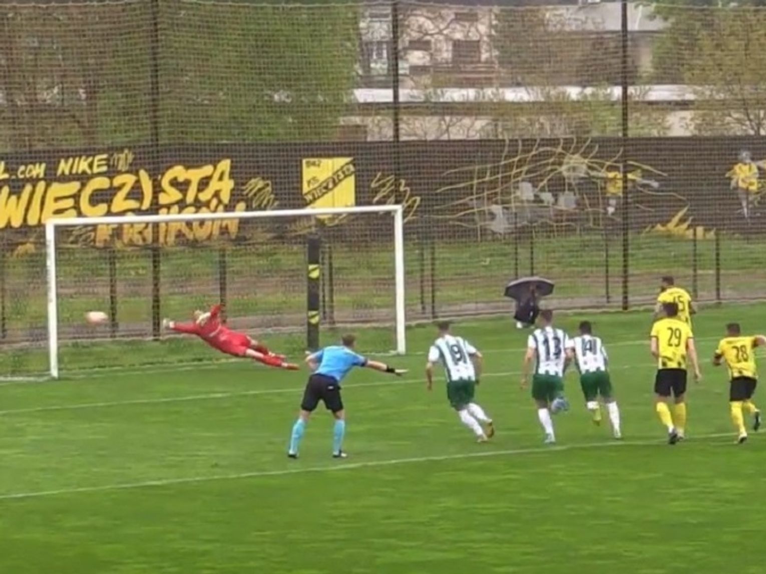 Minuty do końca meczu płynęły nieubłaganie, jednak zespół Wieczystej nie zamierzał poprzestawać i nadal szukał okazji na następne trafienia, przenosząc grę na naszą stronę boiska. W doliczonym czasie to my mieliśmy dobrą możliwość na honorowego gola. Po rzucie wolnym i dośrodkowaniu Mateusza Szweda, piłkę przejął Sergiy Kulynych, jednak oddał strzał nad bramkę rywali. Ostatecznie trzy punkty wpadły na konto Wieczystej Kraków.