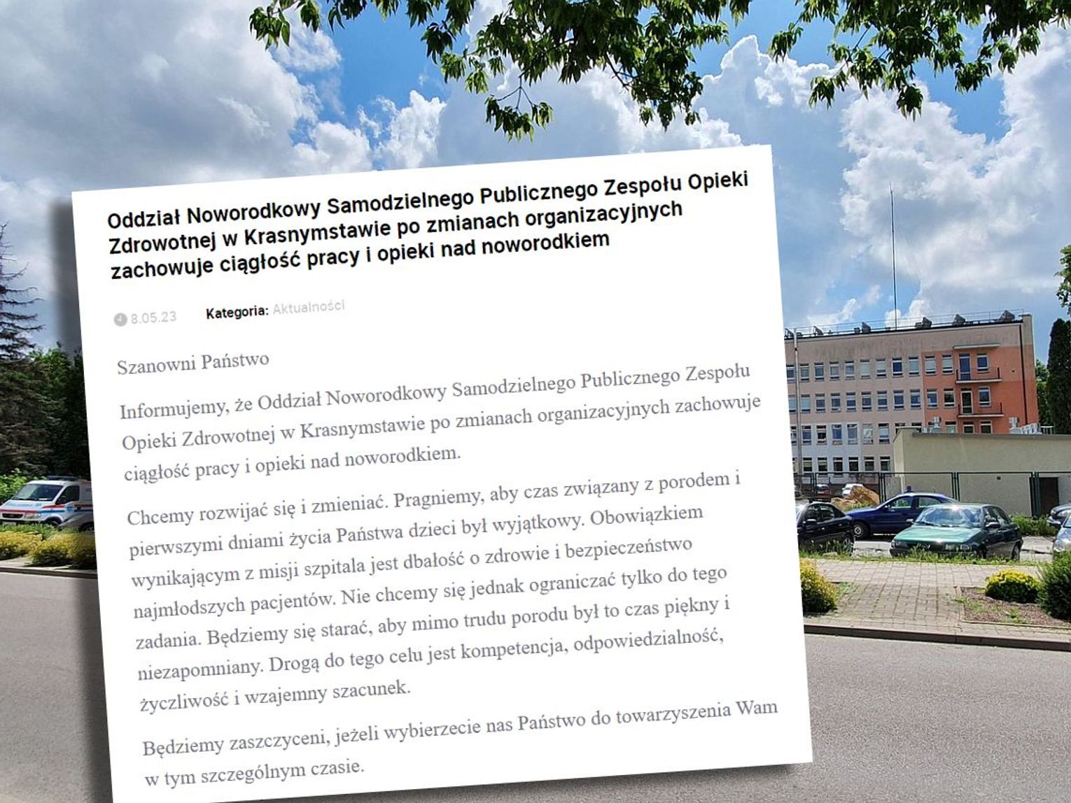 - Wydaliśmy taki komunikat, bo były sygnały i zapytania, czy my nadal działamy. Chcemy, aby panie nadal u nas rodziły i żeby liczba porodów była większa. Z tego względu dostosowaliśmy kadrowo i organizacyjnie strukturę oddziałów: ginekologicznego, położniczego i noworodkowego do potrzeb i oczekiwań pacjentek - wyjaśnia Andrzej Jarzębowski, dyrektor Samodzielnego Publicznego Zespołu Opieki Zdrowotnej w Krasnymstawie.