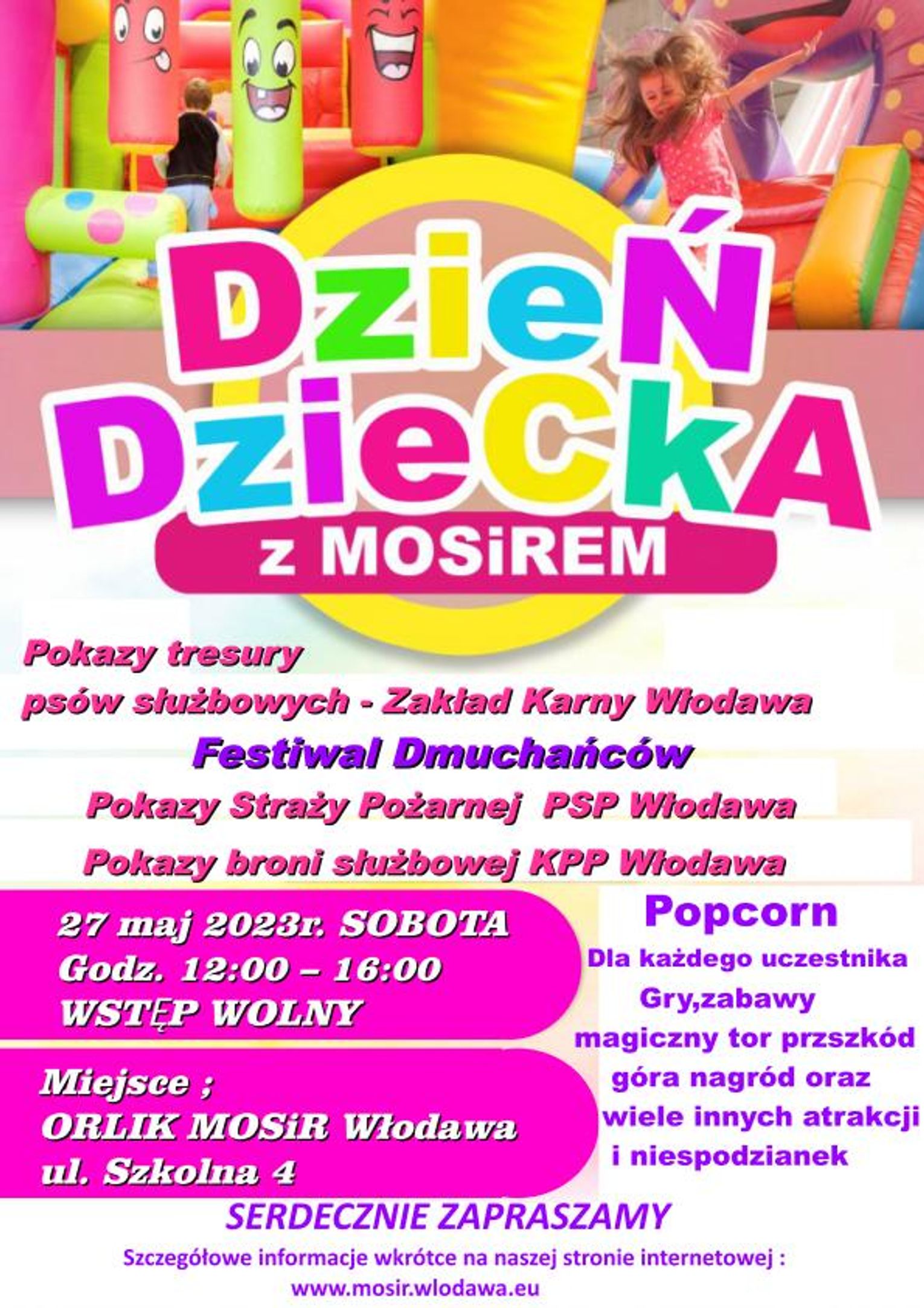 W programie wydarzenia zaplanowano: pokazy tresury psów służbowych z Zakładu Karnego we Włodawie, Festiwal Dmuchańców, pokazy straży pożarnej PSP Włodawa, pokazy broni służbowej KPP Włodawa. Każdy z uczestników będzie mógł skorzystać z gier, zabaw o magicznego toru przeszkód. Dla wszystkich uczestników przewidziano popcorn.