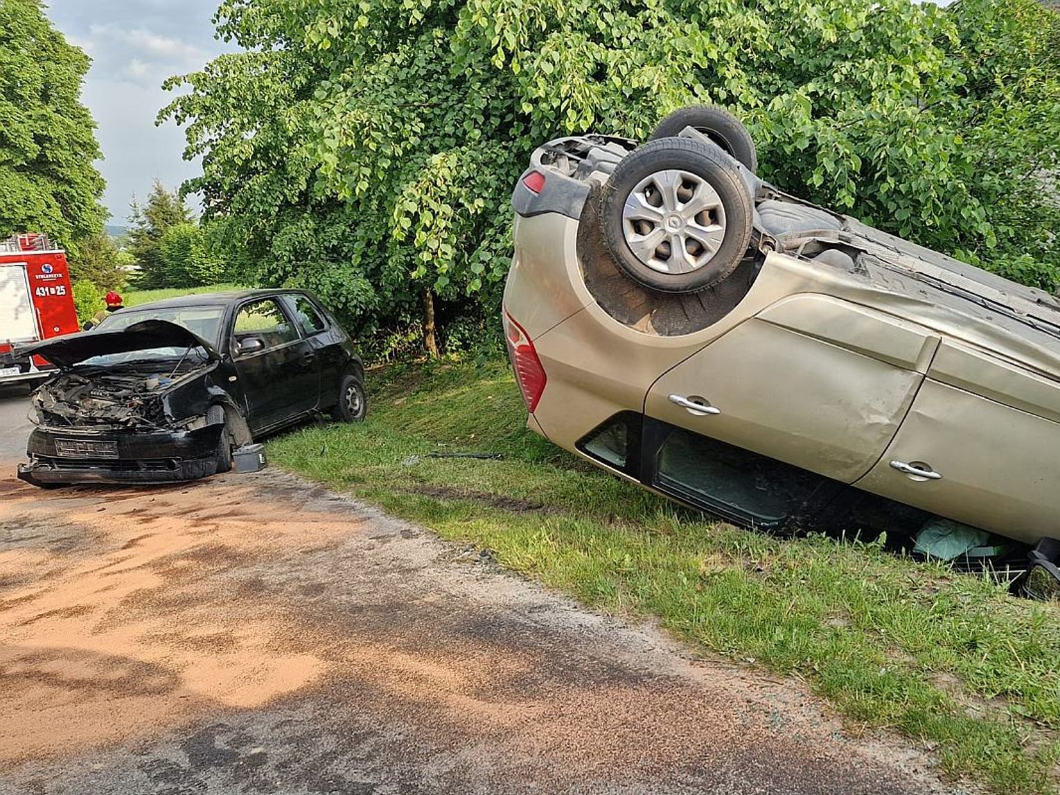 Z ustaleń krasnostawskich policjantów wynika, że 56-letni kierowca volkswagena chciał skręcic w lewo w kierunku własnej posesji. Nie ustąpił jednak pierwszeństwa przejazdu jadącemu z naprzeciwka kierującemu renault scenikiem. W wyniku zderzenia drugie auto dachowało na poboczu i wylądowało kołami do góry, a 67-latek został odwieziony do szpitala, ale badania nie wykazały obrażeń.