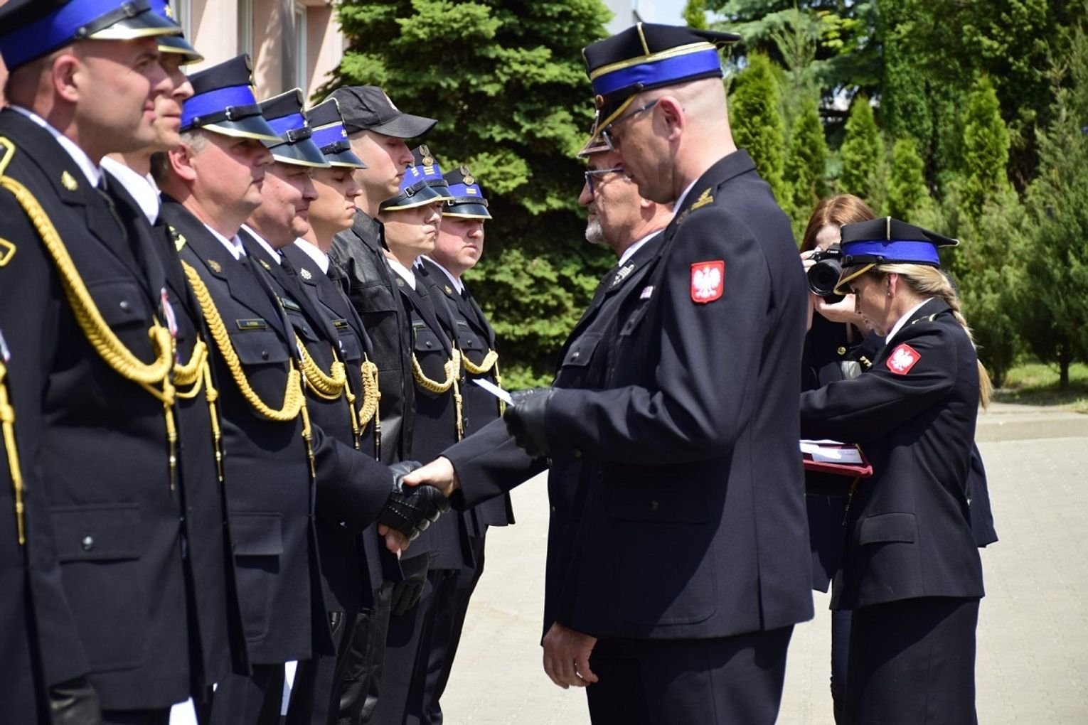 - Uroczystości rozpoczęły się odsłonięciem tablicy upamiętniającej mjr poż. Stefana Fola komendanta Straży Pożarnej w latach 1929 – 1944. Aktu odsłonięcia dokonała wnuczka majora Fola Maja Kusy wraz z rodziną. Tablica ta znajduje się na elewacji budynku Kina Zorzy w Chełmie przy ulicy Strażackiej 2 - mówi bryg. Wojciech Chudoba, zastępca komendanta chełmskich strażaków. - Następnym elementem uroczystości była uroczysta zbiórka przed Jednostką Ratowniczo – Gaśniczą Nr 1, na której zostały wręczone odznaczenia i awanse na wyższe stopnie służbowe.