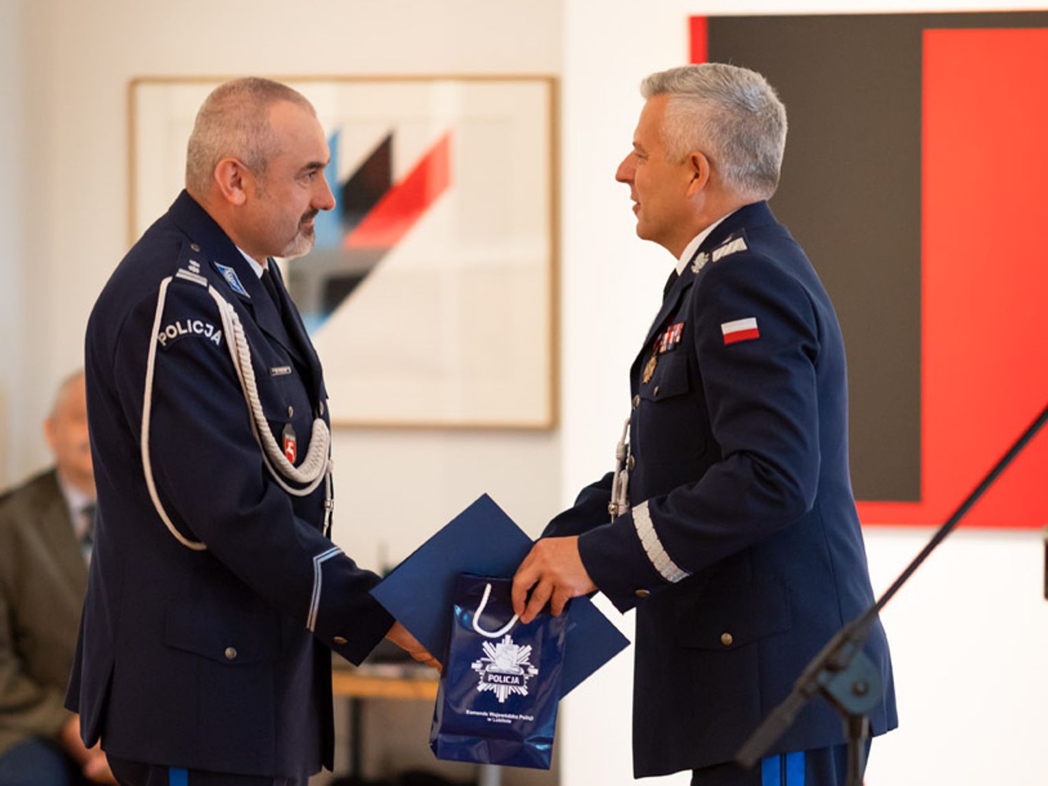 W ceremonii uczestniczyli przedstawiciele władz miejskich i samorządowych, szefowie służb mundurowych, przedstawiciele wymiaru sprawiedliwości, jak też instytucji współpracujących na co dzień z policją oraz kadra kierownicza jednostki. Komendant od zgromadzonych gości otrzymał gratulacje i życzenia w związku z objęciem funkcji komendanta chełmskich policjantów.