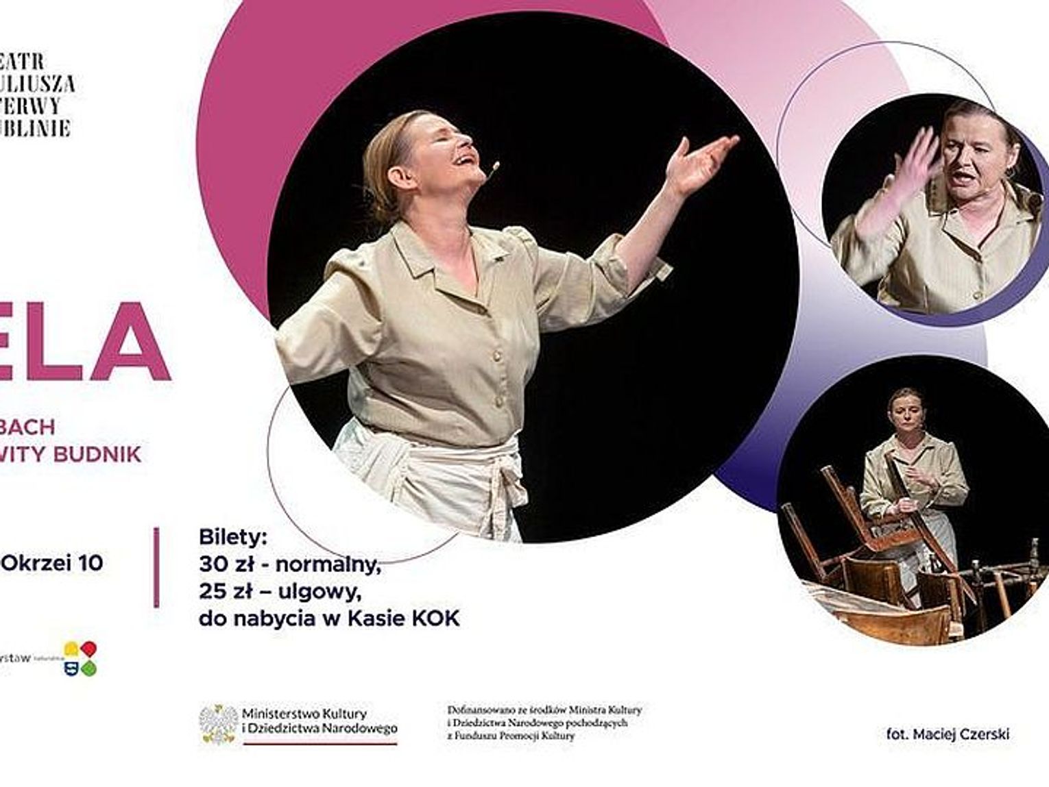 Spektakl prezentowany będzie w ramach Sceny Reduta, której organizatorem jest Teatr im. Juliusza Osterwy w Lublinie. Bilety w cenie 30 zł normalny i 25 zł ulgowy do kupienia w kasie KDK i na www.bilety.krasnystaw.pl