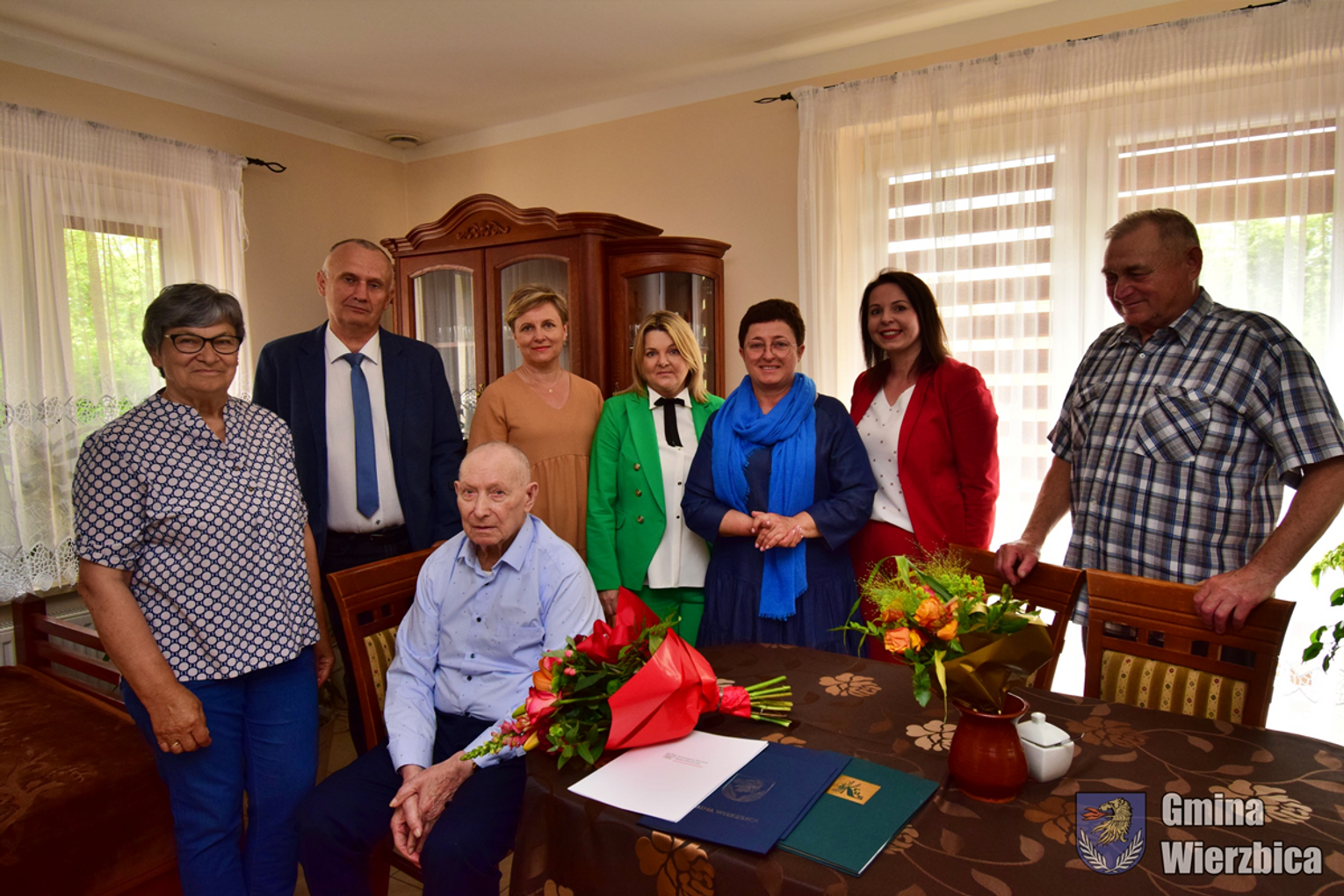 Pan Piotr swoje wyjątkowe urodziny obchodził 9 czerwca. Z tej okazji dostojnego jubilata odwiedziła rzesza gości – wójt gminy Wierzbica Bożena Deniszczuk, przewodniczący rady gminy Zdzisław Muszański, kierownik Ośrodka Pomocy Społecznej w Wierzbicy Beata Sienkiewicz, zastępca kierownika Urzędu Stanu Cywilnego w Wierzbicy Magdalena Kawiak oraz kierownik placówki terenowej KRUS w Chełmie Monika Tatys.