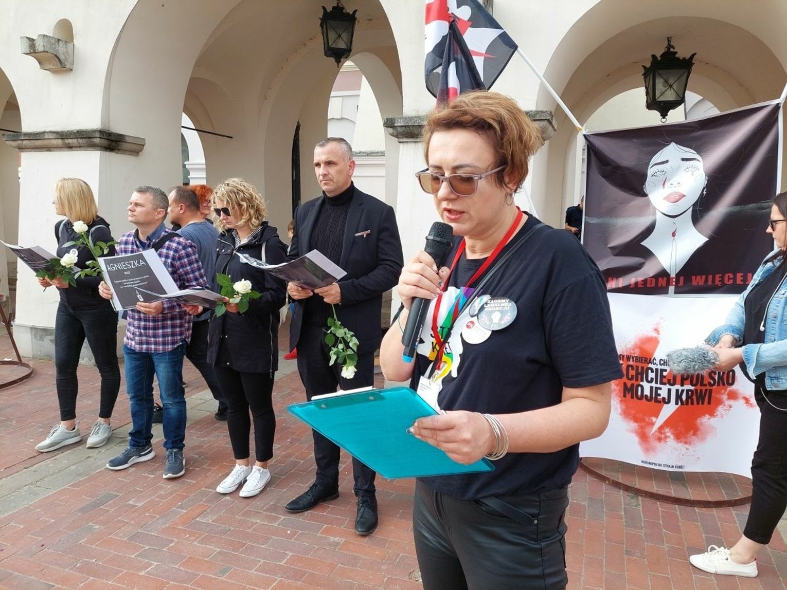 - Zamiast opieki lekarskiej w tym traumatycznym czasie, jakim jest strata ciąży, kobieta nie otrzymuje fachowej pomocy. Mimo że jest w szpitalu, czeka na pewną śmierć. W XXI wieku państwo, w obliczu wielkiej tragedii tych kobiet, zamiast opieki i wsparcia, odbiera życie. Stoimy tutaj jako obrońcy praw kobiet, godności ludzkiego życia. Protestujemy przeciwko torturom i śmierci kobiet na porodówkach, w szpitalach, w gabinetach ginekologicznych, przeciwko zmuszaniu kobiet do noszenia zagrażających i niechcianych ciąż. Przeciwko zbrodniczym rządom oraz cynizmowi i naruszaniu prawa przez lekarzy - powiedziała Agnieszka Klimczuk.