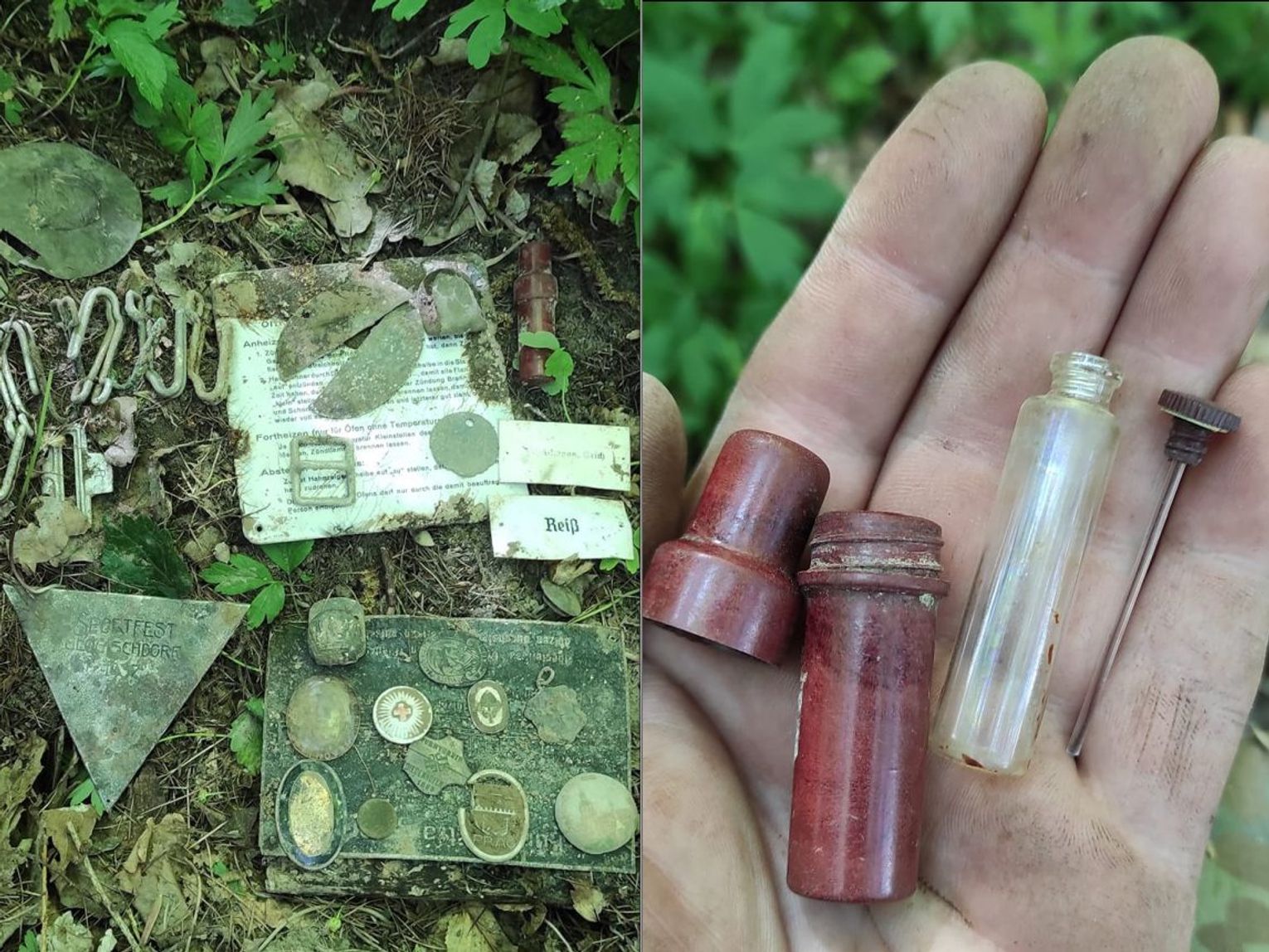 Artefakty pochodzą z okresu zarówno pierwszej, jak i drugiej wojny światowej. Przedmioty związane z Cesarstwem Prus i III Rzeszą były zakopane w lesie.