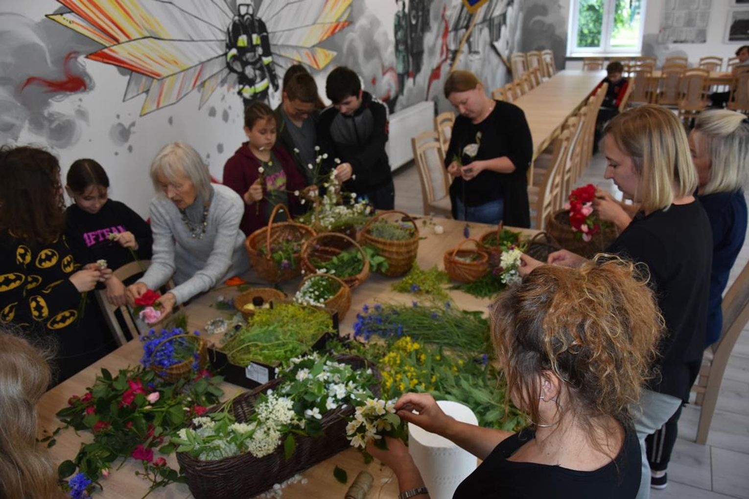 Na warsztatach „Wieńce, wianki, wianeczki" sztuki wicia wianków uczy Irena Zdebska-Blim - twórczyni ludowa związana z Hrubieszowskim Domem Kultury, specjalistka od tworzenia tradycyjnej palmy wielkanocnej i wieńców dożynkowych.