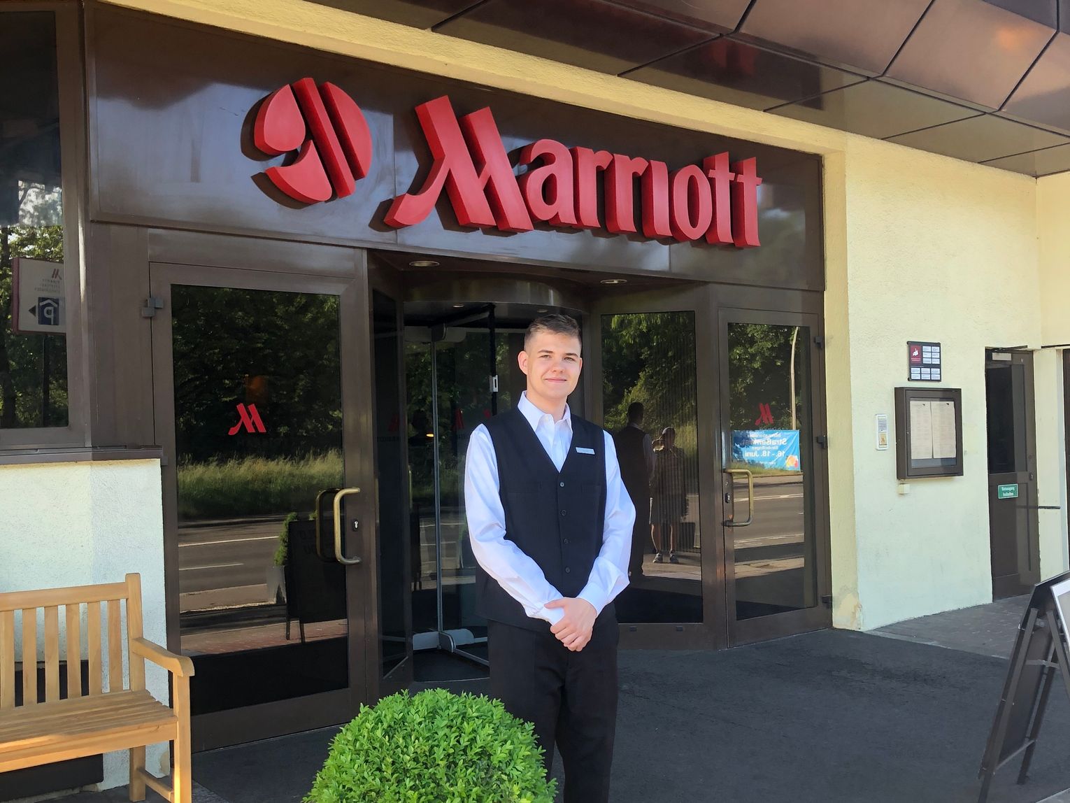 Uczestnicy wyjazdu: Łukasz Makowski, Ernest Szlagowski, Patrycja Świętowicz i Maria Zielińska zdobywali doświadczenie z zakresu branży, w której się kształcą w hotelach Marriott oraz Erikson.