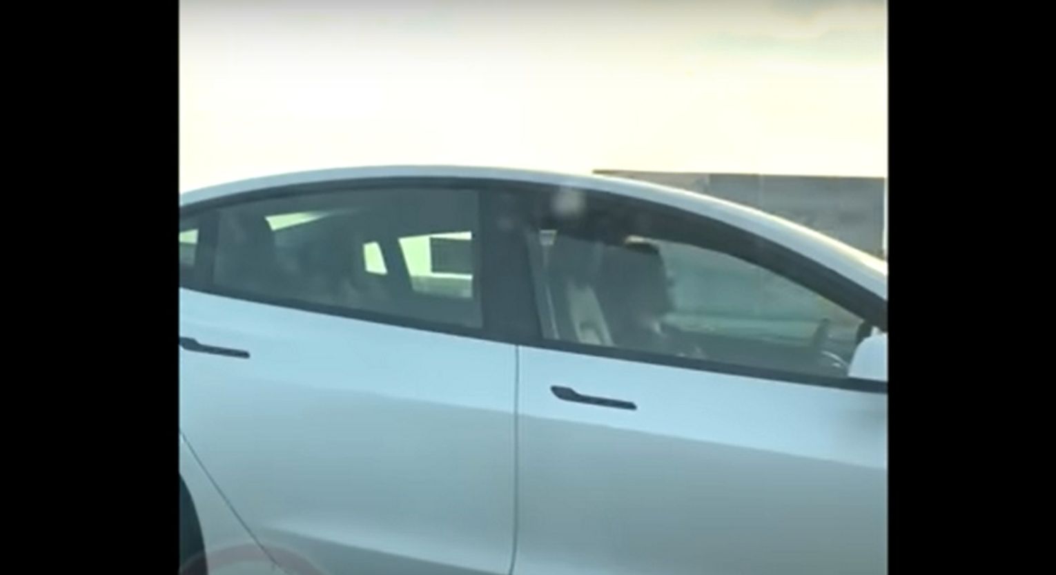 Film został nagrany z auta jadącego za białą teslą. Widać, że samochód jedzie lewym pasem, wyprzedza jedną ciężarówkę, potem cysternę. W końcu pojazd, z którego pochodzi nagranie, wyprzedza teslę, a kamera jest skierowana na kierującą kobietę. Nie ma 100-procentowej pewności, że spała, ale autor nagrania jest o tym święcie przekonany.