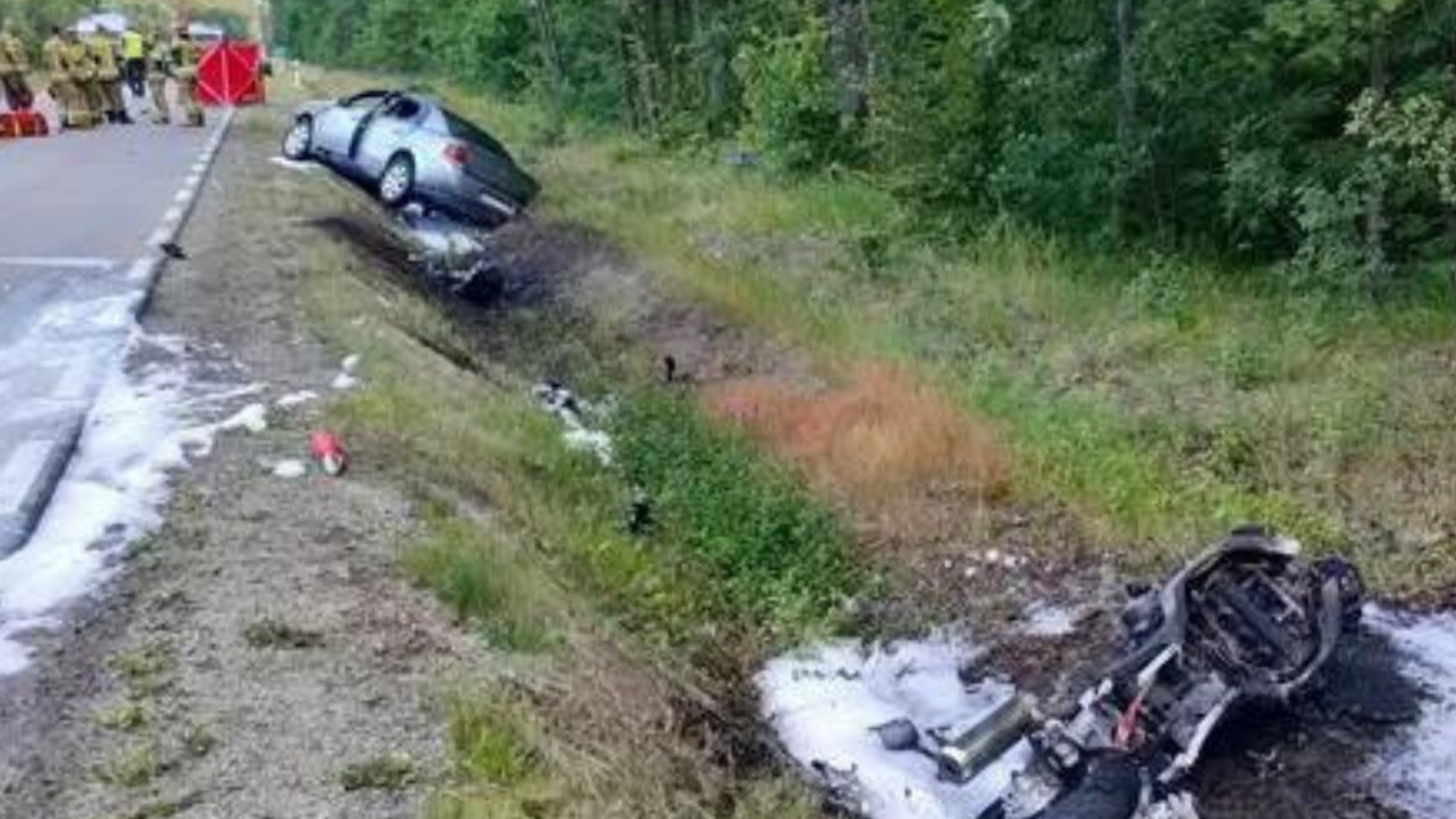 – Z nieznanych dotąd przyczyn 34-letni kierujący pojazdem marki Opel prawdopodobnie zjechał na przeciwległy pas ruchu i uderzył czołowo w nadjeżdżający z naprzeciwka motocykl marki Yamaha. Kierował 41-latek, a pasażerką była jego 40-letnia żona. W wyniku zderzenia obydwa pojazdy stanęły w płomieniach, a motocyklista wraz z pasażerką ponieśli śmierć na miejscu – relacjonuje sierż. szt. Dorota Wiatr-Kurzawa z Wydziału Ruchu Drogowego Komendy Miejskiej Policji w Radomiu.