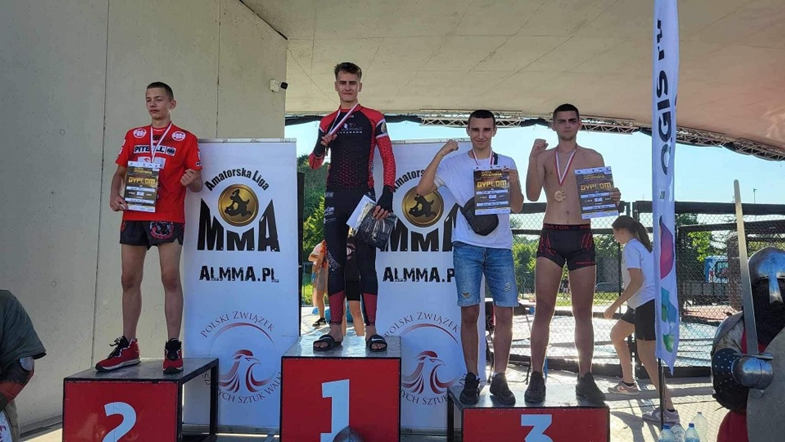 16-letni Dawid Ważny, najmłodszy z trójki chełmskich fighterów, stoczył trzy pojedynki. Pierwszy skończył przed czasem, zakładając przeciwnikowi "gilotynę" i zmuszając do poddania, a w drugiej zwyciężył na punkty. W trzecim starciu dominował, jednak w pewnym momencie nie zdołał uniknąć ciosu i rywal złamał mu nos, co zmusiło sędziego do przerwania walki. Tym samym zakończył turniej z brązowym medalem.