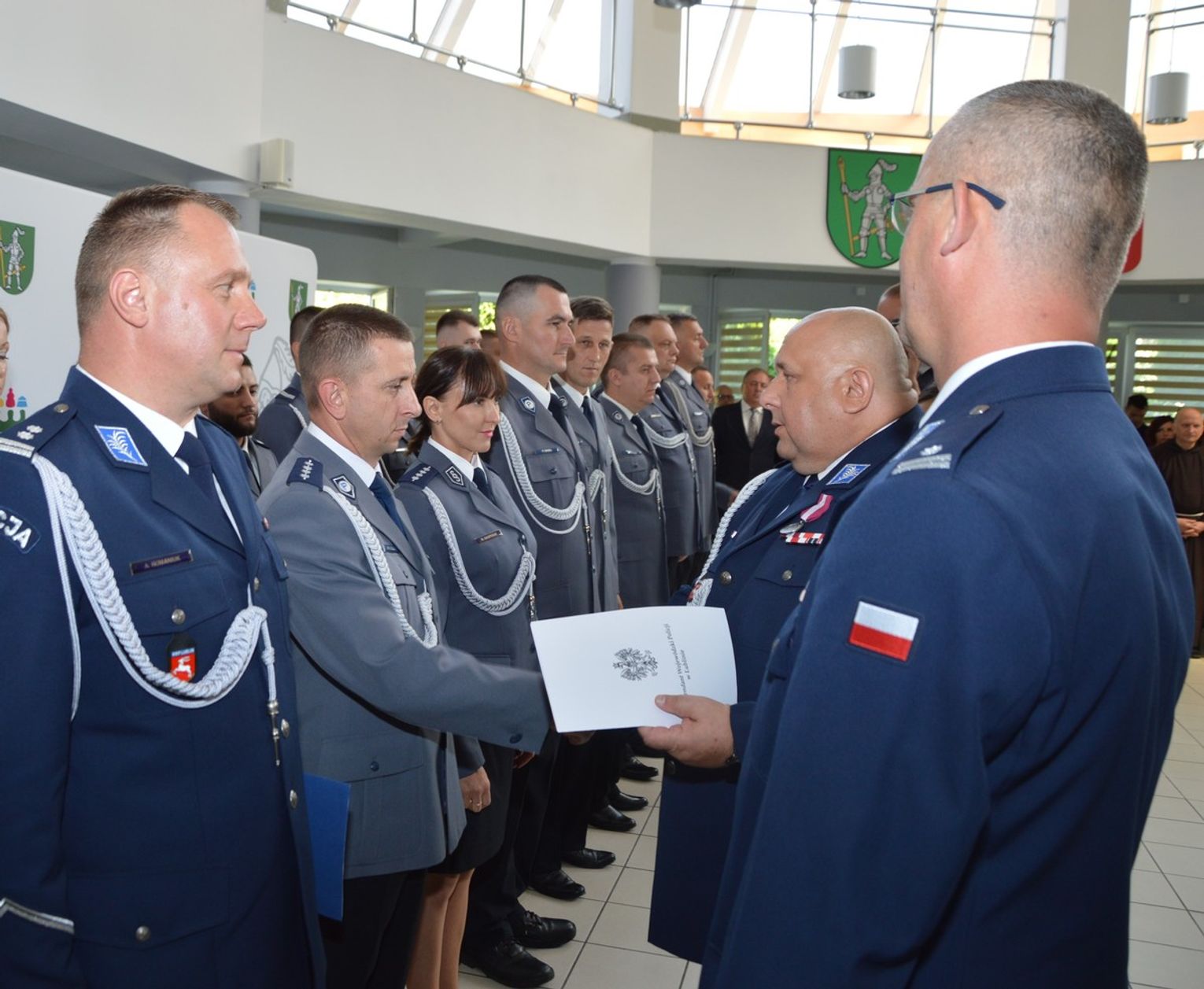 W sali konferencyjnej Urzędu Miejskiego we Włodawie odbyła się uroczysta zbiórka, w której uczestniczył zastępca komendanta wojewódzkiego policji w Lublinie podinspektor Olgierd Oleksiak.