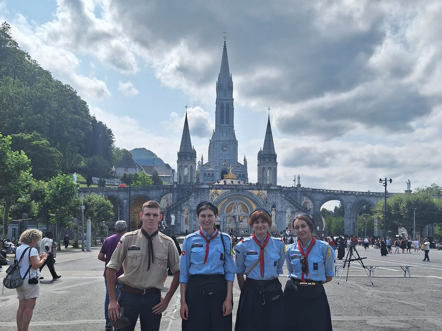 - Przed głównymi obchodami w Lizbonie zatrzymaliśmy się we francuskich miejscowościach Paray-le-Monial i Lourdes, odwiedzając znajdujące się tam Sanktuaria. Następnie kilka dni wędrowaliśmy szlakiem Camino we francuskich Pirenejach. Nieśliśmy ze sobą swoje plecaki, jedzenie, które przygotowywaliśmy sami w drodze, a także namioty, w których nocowaliśmy. W tej skautowej wędrówce doświadczyliśmy niezwykłej dobroci spotkanych Francuzów. Pomimo deszczu, upału czy zmęczenia byliśmy wspierani dobrym słowem, uśmiechem, a także ofiarowanym jedzeniem czy słodyczami. Często teren był trudny i górzysty, ale wynagradzało nam to wędrowanie ze wspaniałymi ludźmi i zapierające dech widoki - relacjonuje nam Kasia.