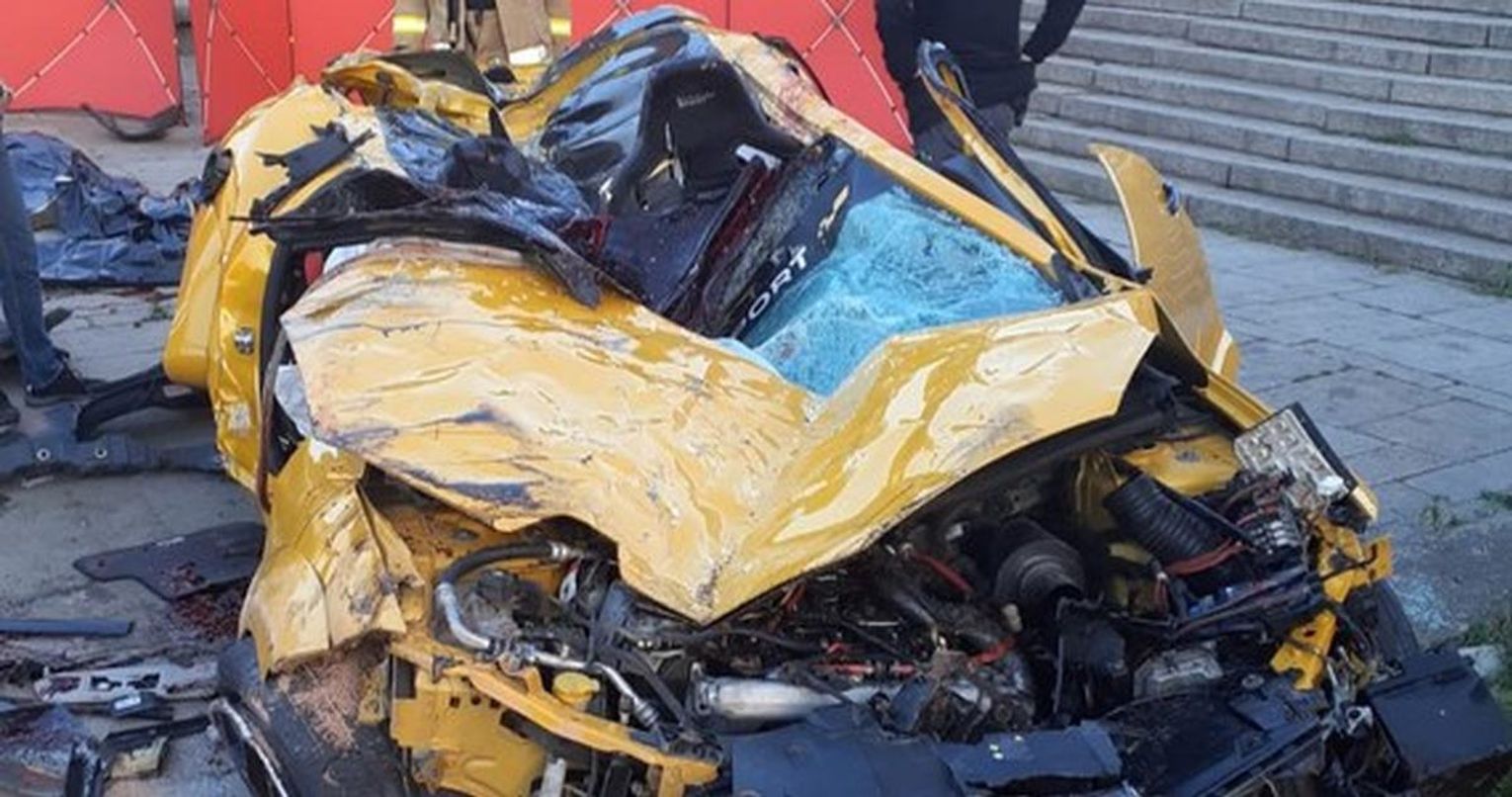 Na nagraniu z monitoringu widać, jak auto mija wchodzącego na jezdnię pieszego i jedzie dalej, aż do momentu uderzenia w mur. Eksperci oceniają, że auto jechało ok. 150 km/h.