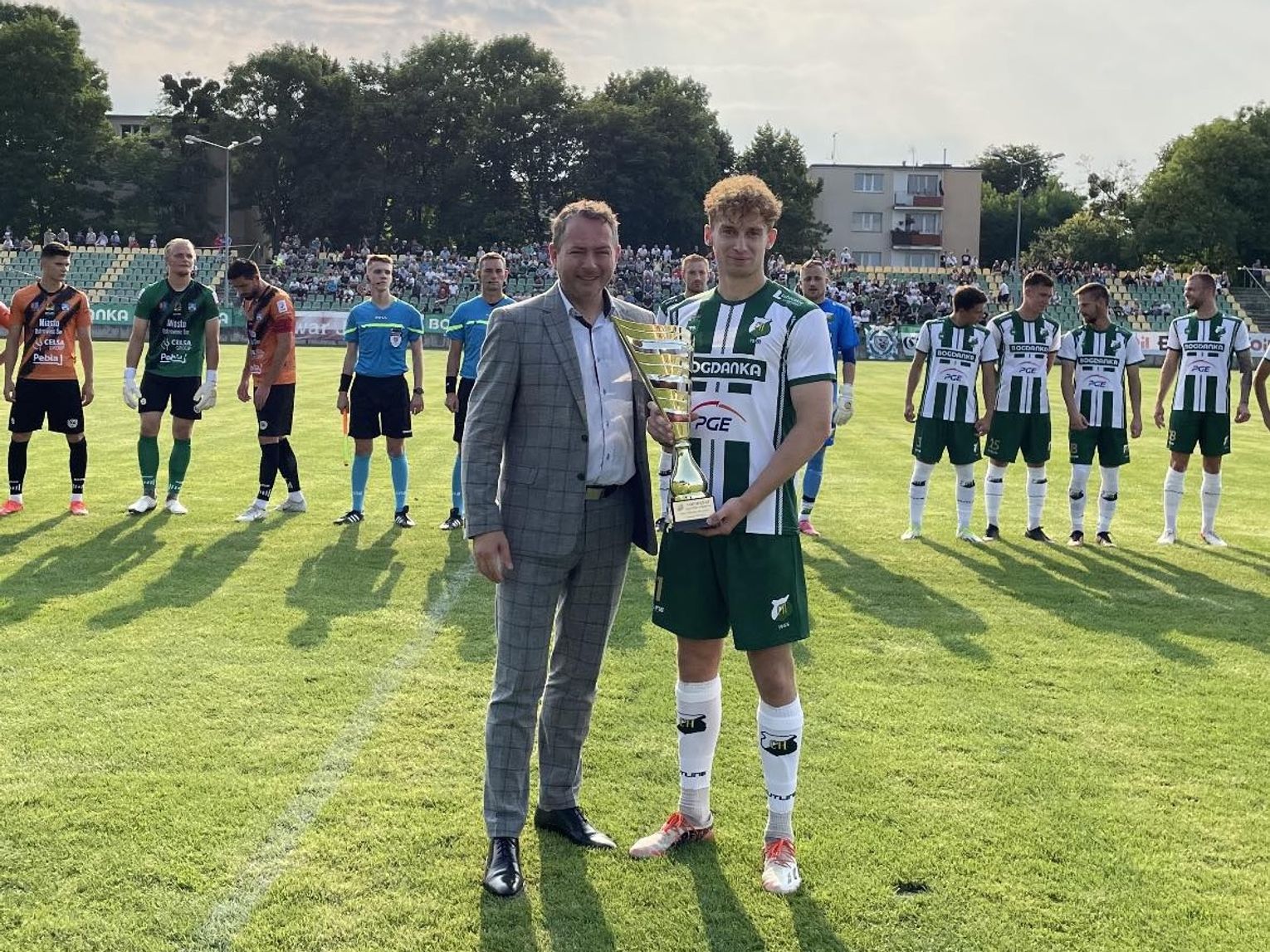Tuż przed pierwszym gwizdkiem prezes spółki Chełmski Klub Sportowy Grzegorz Stawinoga nagrodził pucharem Jakuba Knapa. To właśnie ten napastnik był w minionym sezonie zdobywcą największej liczby bramek dla biało-zielonych. Kilka dni przed pierwszym meczem rundy jesiennej klub poinformował, że zawodnik związał się z nim dwuletnim kontraktem.