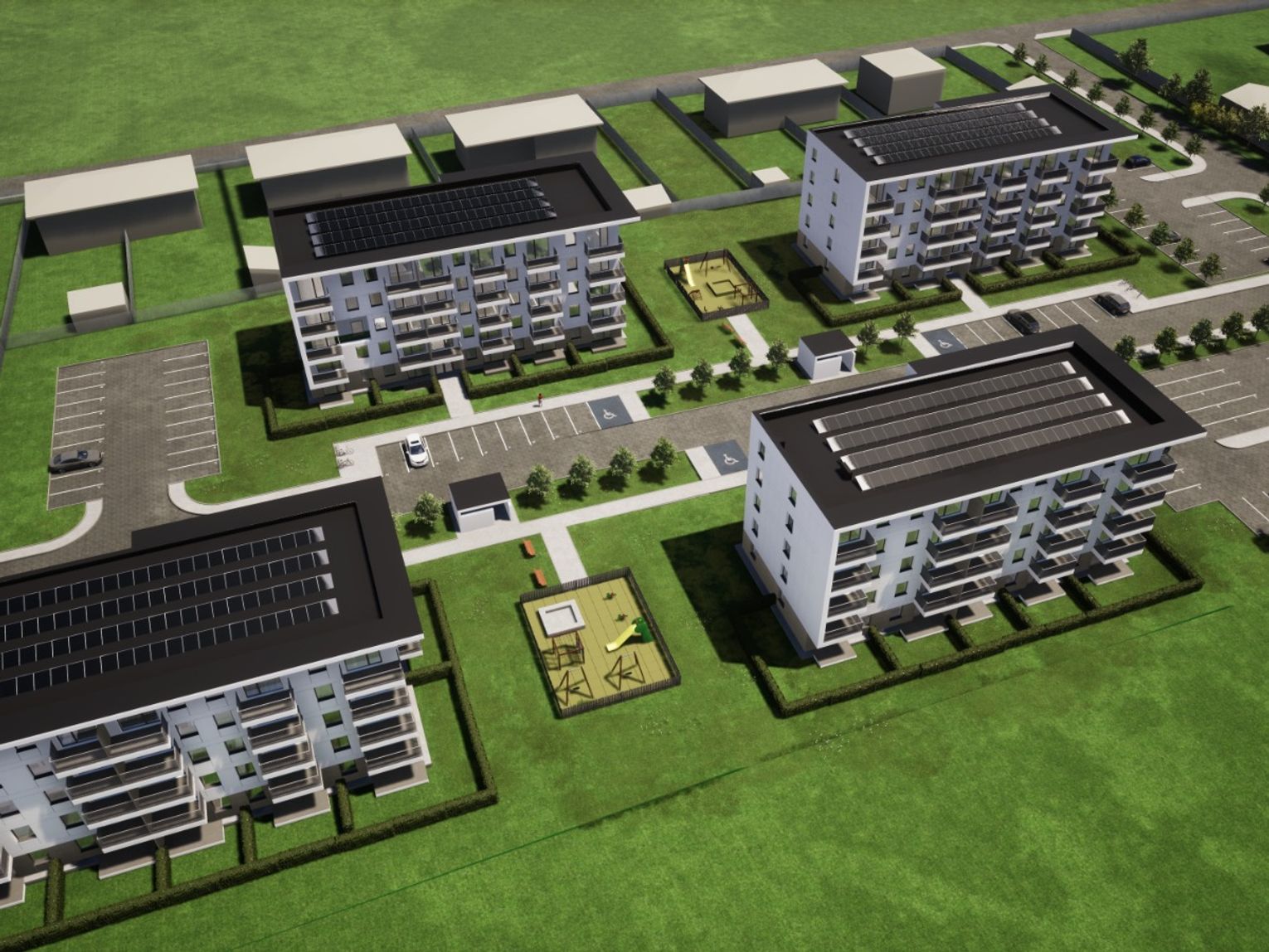 W każdym z bloków mają być windy i balkony. Zostaną też wyposażone w instalacje wykorzystujące odnawialne źródła energii, która zasili pompy ciepła i będzie wykorzystywana do ogrzewania tzw. części wspólnych. Do tego dojdzie zagospodarowanie otoczenia w postaci parkingów, placu zabaw i terenów zielonych.
