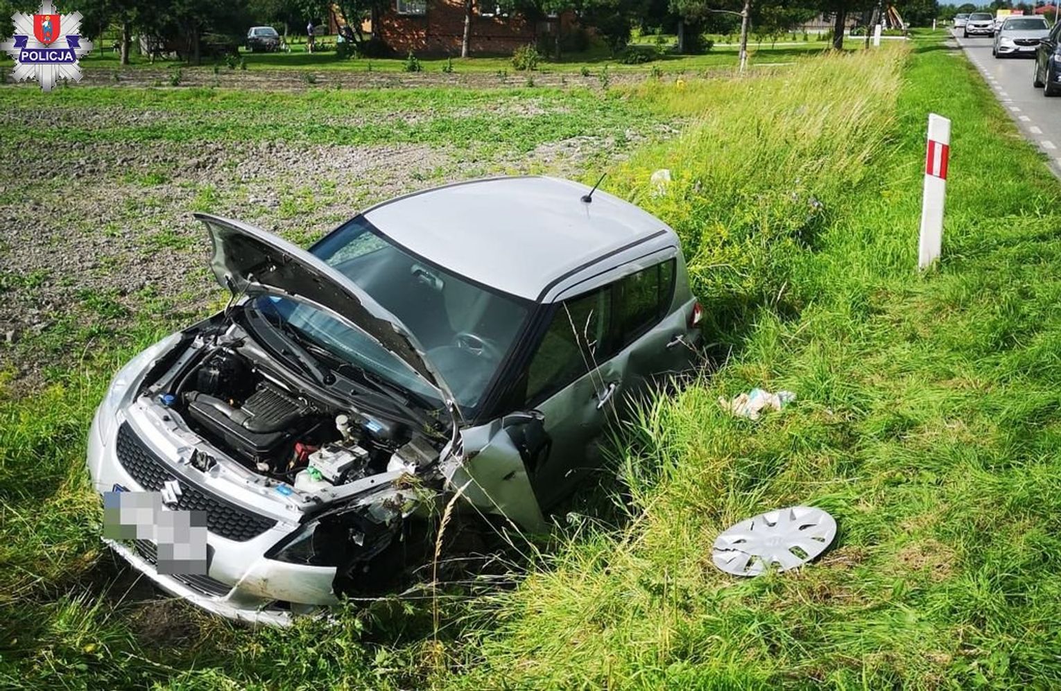 Do zdarzenia drogowego doszło w czwartek, 10 sierpnia, ok. godz. 12.30 na drodze wojewódzkiej w Żdanówku (gmina Zamość). Ze wstępnych ustaleń policjantów wynika, że kierująca suzuki jechała od strony Lipska w kierunku Zamościa. Nagle zjechała na przeciwny pas ruchu, a zaraz potem na pobocze. Samochód dachował, lądując na kołach w przydrożnym rowie.