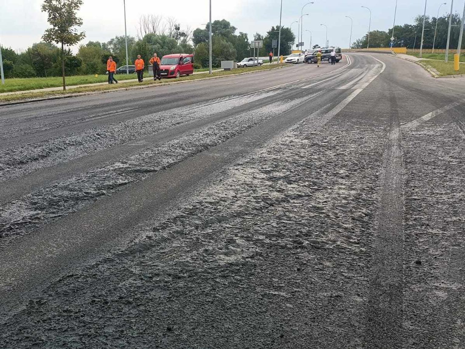 Ze wstępnych ustaleń wynika, że nieustalony dotąd kierowca, zajechał drogę ciężarówce przewożącej zawartość sadzawki. Większy pojazd musiał ostro hamować, przez co jego zawartość trafiła na jezdnię. Miejsce zostało zabezpieczone, żeby nie doszło do poślizgów i kolizji. Wieczorem po nietypowej sytuacji nie było już prawie śladu. Policja poszukuje natomiast domniemanego sprawcy zdarzenia.