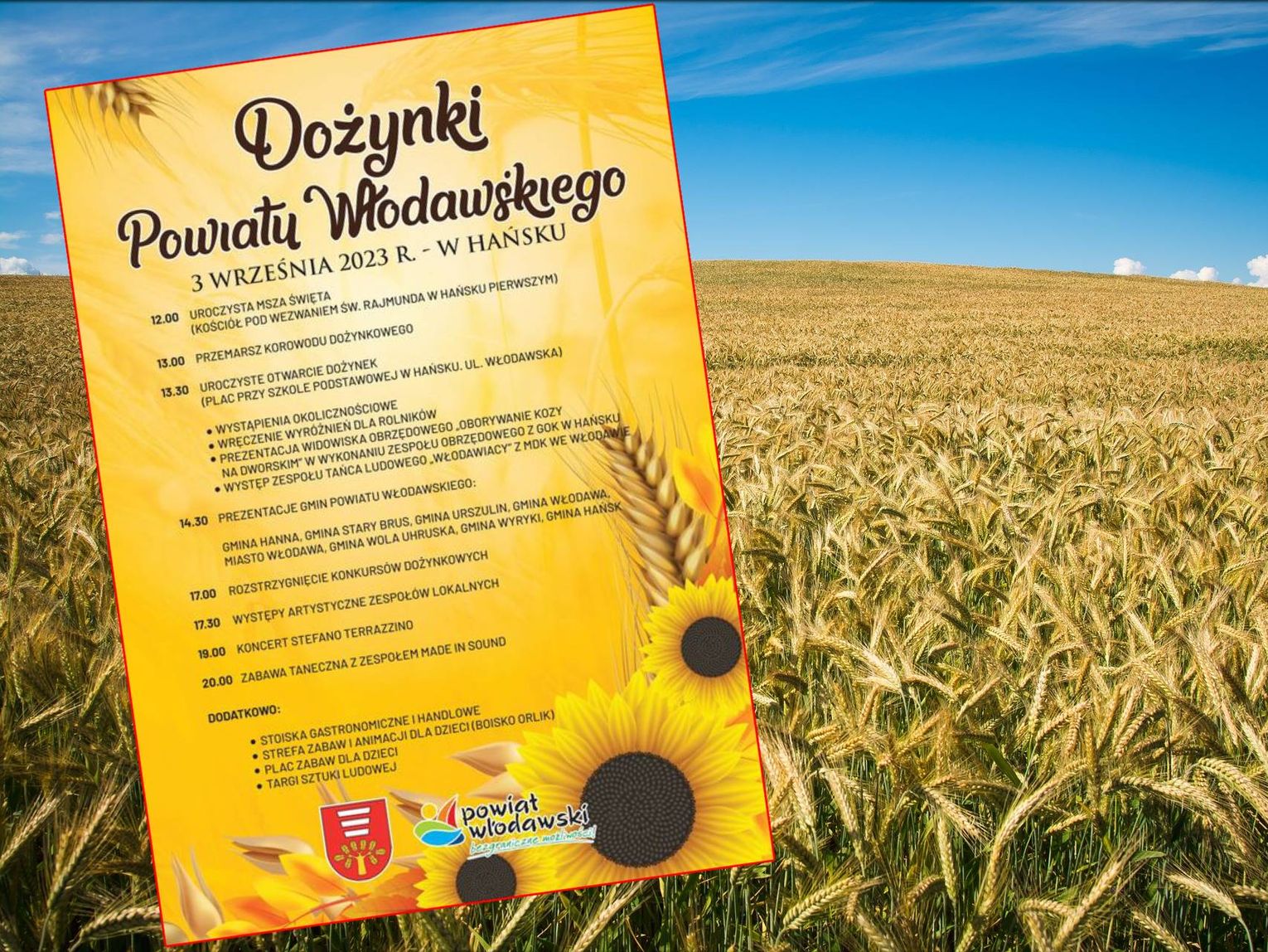W programie także: występy zespołów lokalnych, stoiska gastronomiczne i handlowe, strefa zabaw i animacji dla dzieci oraz targi sztuki ludowej.