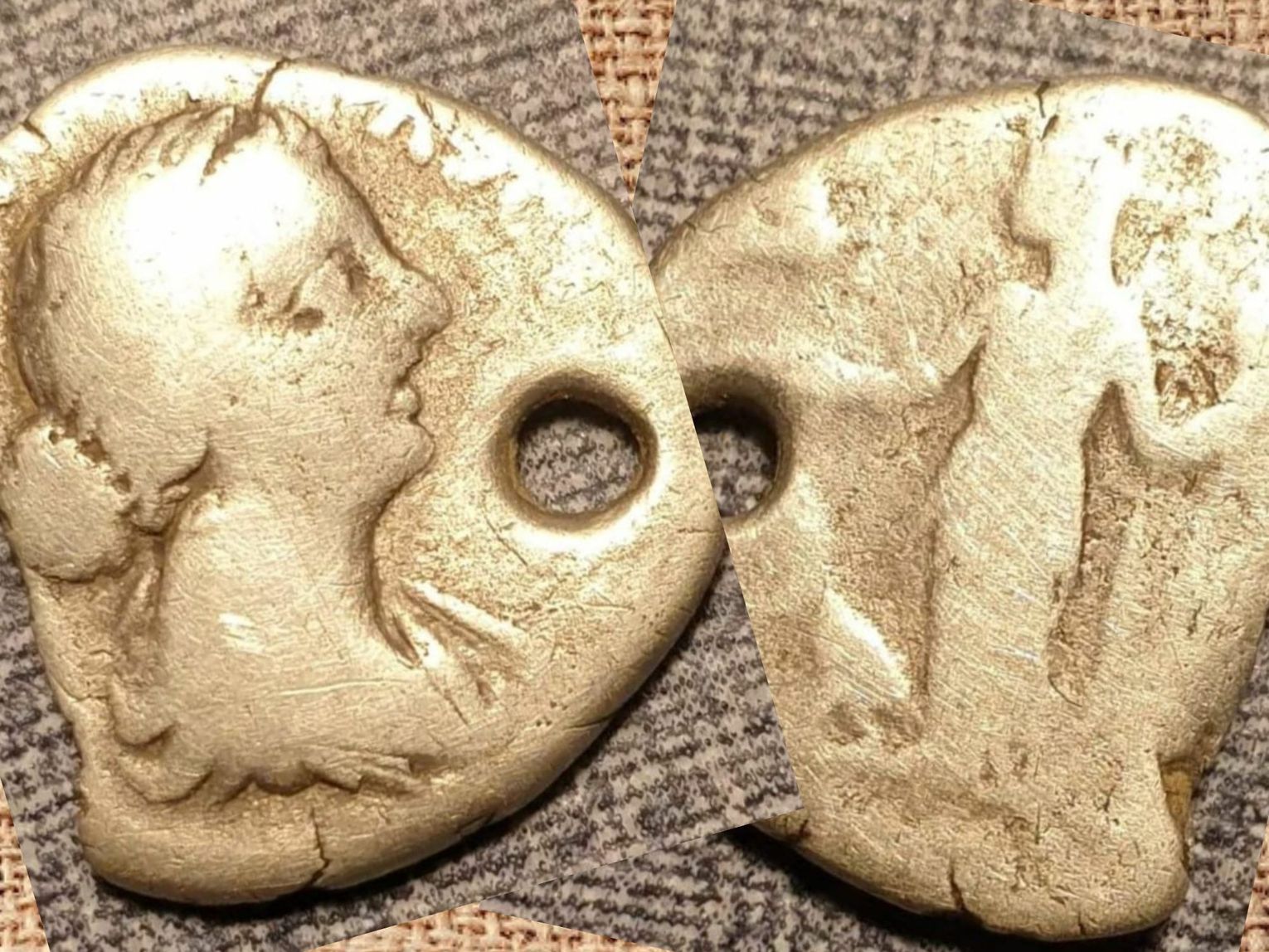 Moneta z podobizną Faustyny Młodszej wykonana jest ze srebra. Nie zachowała się w najlepszym stanie, również z tego powodu, że jeden z jej właścicieli najprawdopodobniej używał jej jako wisiorka. Wykonano w niej otwór i noszono jako ozdobę lub talizman.