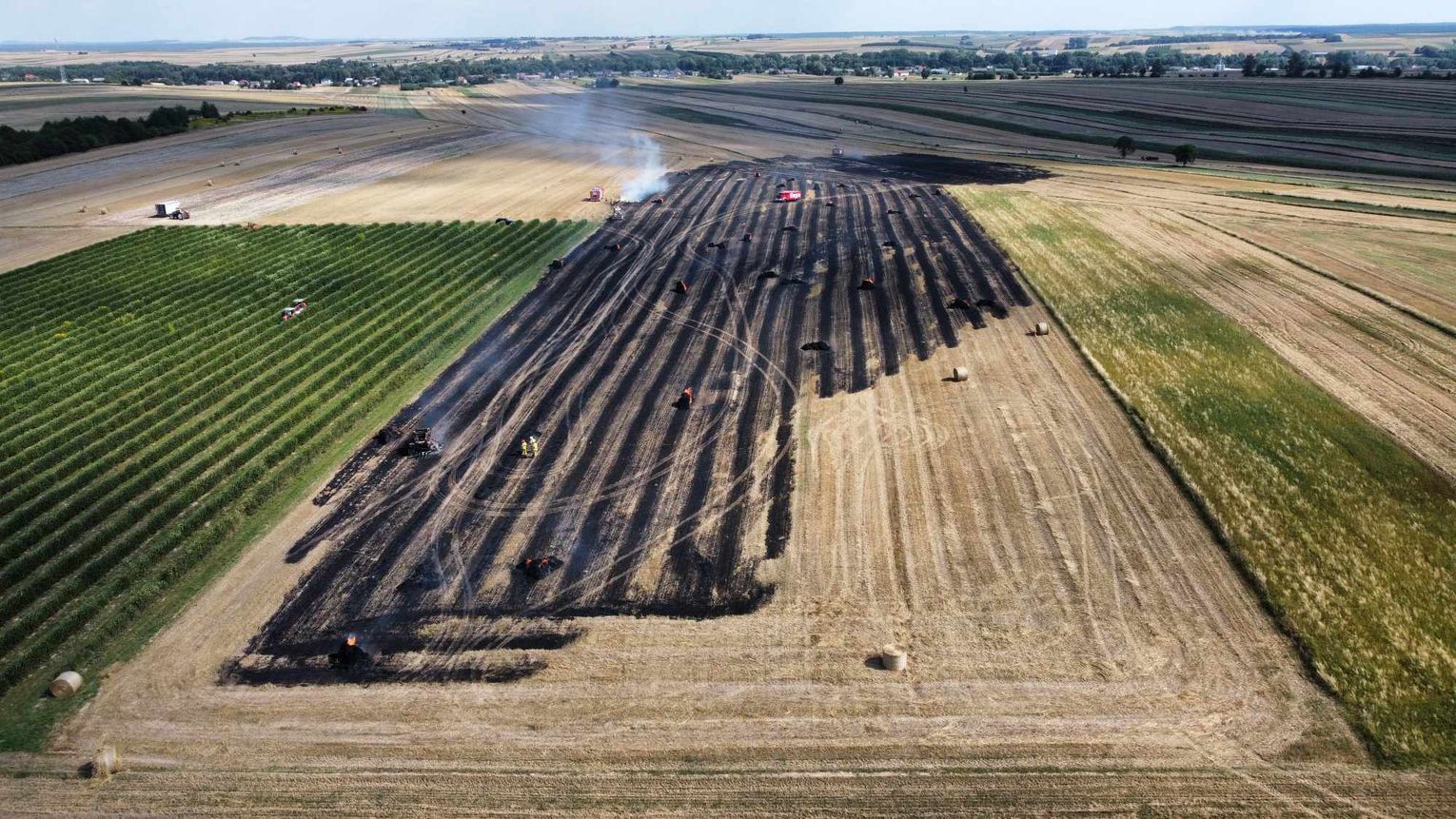 Wczoraj (22 sierpnia) ok godz. 13.30 w miejscowości Kosnowiec (gm. Fajsławice) doszło do pożaru. Z nieznanych dotąd przyczyn w ogniu stanęła prasa do słomy. Pożar urządzenia pochłonął przy okazji słomę, która znajdowała się w okolicy maszyny na polu.