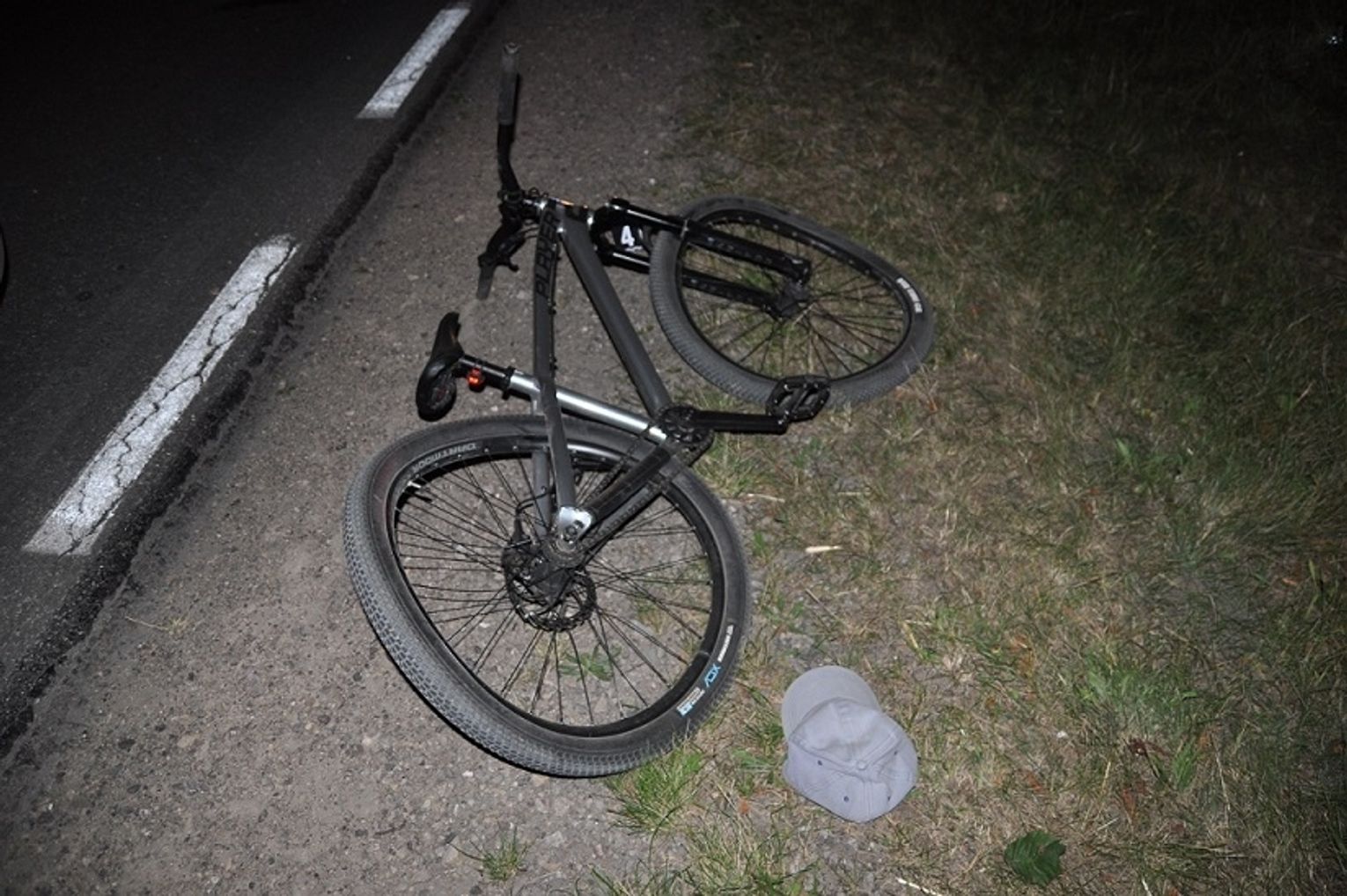 Rowerzysta jechał oświetlonym rowerem i miał na sobie kamizelkę odblaskową.