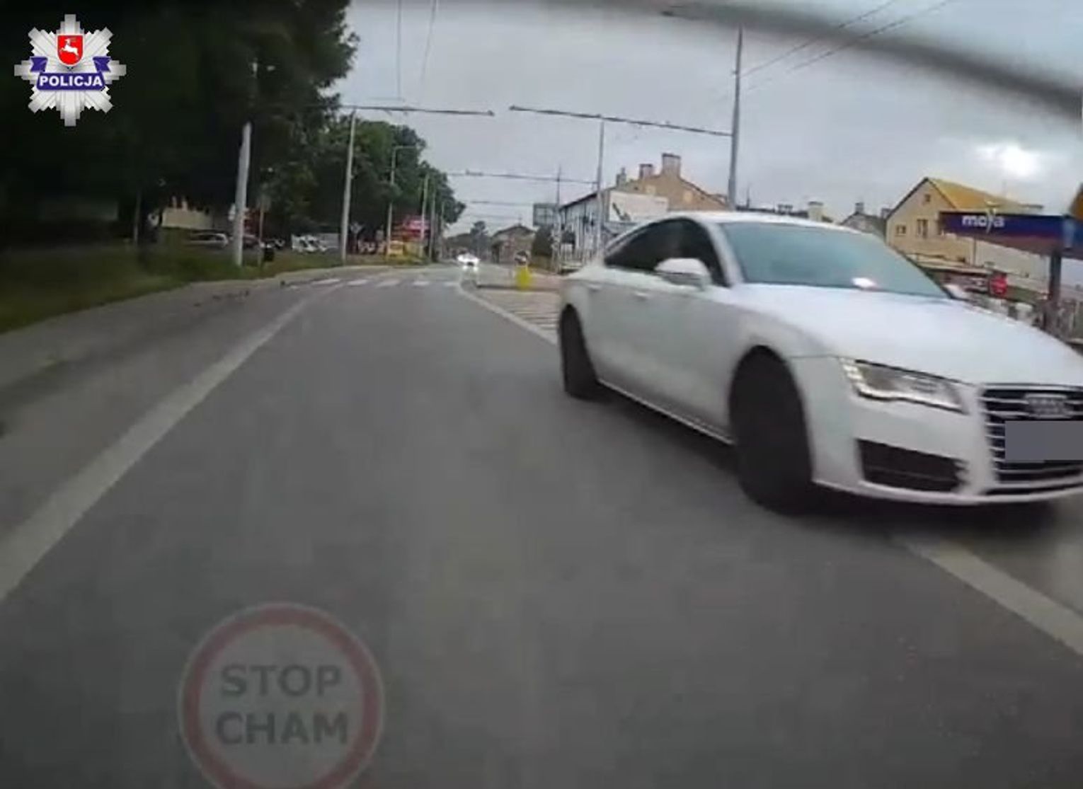 Wszystko zostało zarejestrowane na nagraniu, które trafiło do internetu. Widać na nim, że mężczyzna umieścił za szybą czołową audi wyposażenie pojazdu uprzywilejowanego, wysyłające sygnały świetlne w postaci niebieskich i czerwonych świateł. Zmuszał też innych kierujących do zjechania mu z drogi.