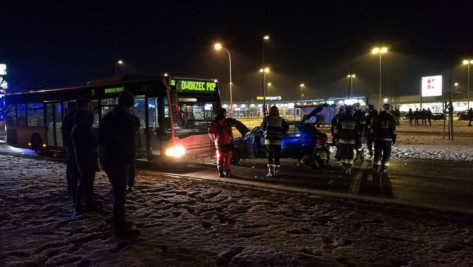 Kierujący Fordem Fiesta wjechał pod prąd i uderzył w autobus CLA, który na szczęście nie przewoził akurat pasażerów. Prowadzący osobowe auto trafił do szpitala, a sam samochód uległ znacznemu uszkodzeniu. Na razie nie wiadomo, dlaczego znalazł się na ulicy jadąc w niewłaściwą stronę. Kierowca był nietrzeźwy, badanie alkomatem wykazało, że ma w organizmie 2 promile alkoholu.