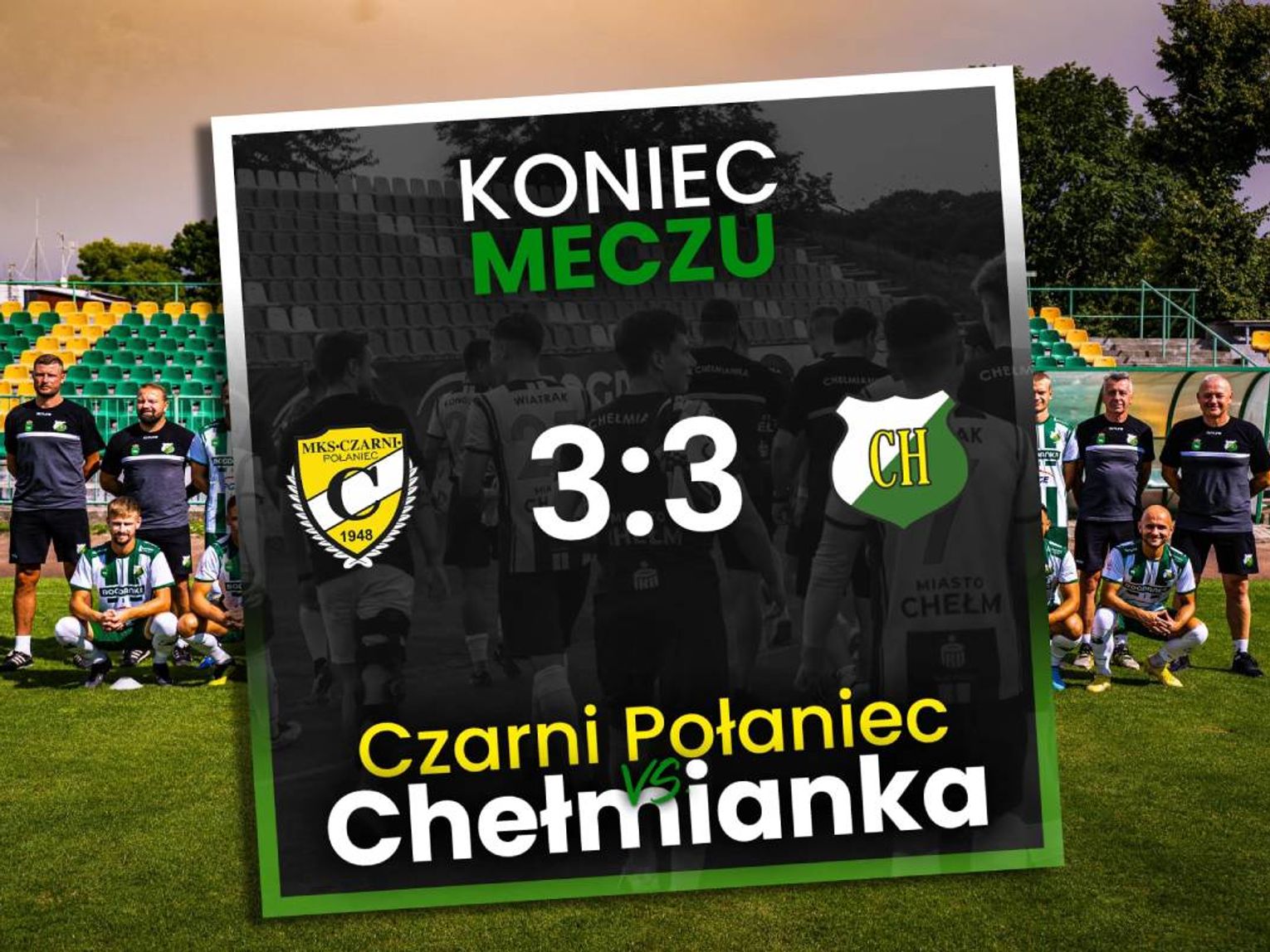Po zmianie stron wiele okoliczności układało się na korzyść drużyny gości. W 70 minucie Chełmianka wyszła na prowadzenia 2:1 po bramce Jakuba Karbownika, natomiast drugą żółtą kartą otrzymał jeden z pomocników gospodarzy Mateusz Chmielowiec. Grając w przewadze jednego zawodnika, jeszcze jednego gola dla Chełmianki zdobył pięć minut później Jakub Knap i wydawało się, że biało-zieloni wrócą z Połańca z trzema punktami. Niestety, w 87 minucie Czarni zdobyli drugą bramkę po strzale Macieja Żądło, a w doliczonym czasie, tuż przed ostatnim gwizdkiem sędziego do wyrównania 3:3 doprowadził Adrian Gębalski.