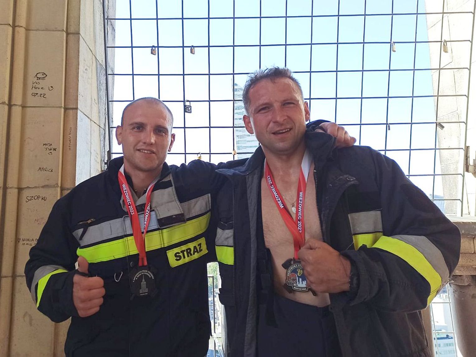 - Do pokonania było 30 pięter i około 800 schodów w pełnym umundurowaniu strażaka i założonym aparatem ochrony dróg oddechowych. W ten sposób mieliśmy na sobie około 20 kilogramów obciążenia. Startowało się w parach, przy czym w klasyfikacji końcowej liczył się czas drugiej osoby, która ukończyła bieg. Koledze udało się to w 5 minut i 47 sekund, a mi w 5 minut i 55 sekund - opowiada Krzysztof Mazurek.