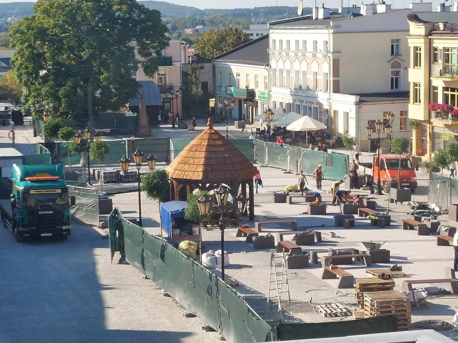 Projekt rewitalizacyjny zakładał oprócz zabezpieczenia podziemi i remontu nawierzchni placu również nasadzenie nowych drzew i roślin w donicach oraz zamontowanie małej architektury. I właśnie te elementy pojawił się już w centrum Chełma.