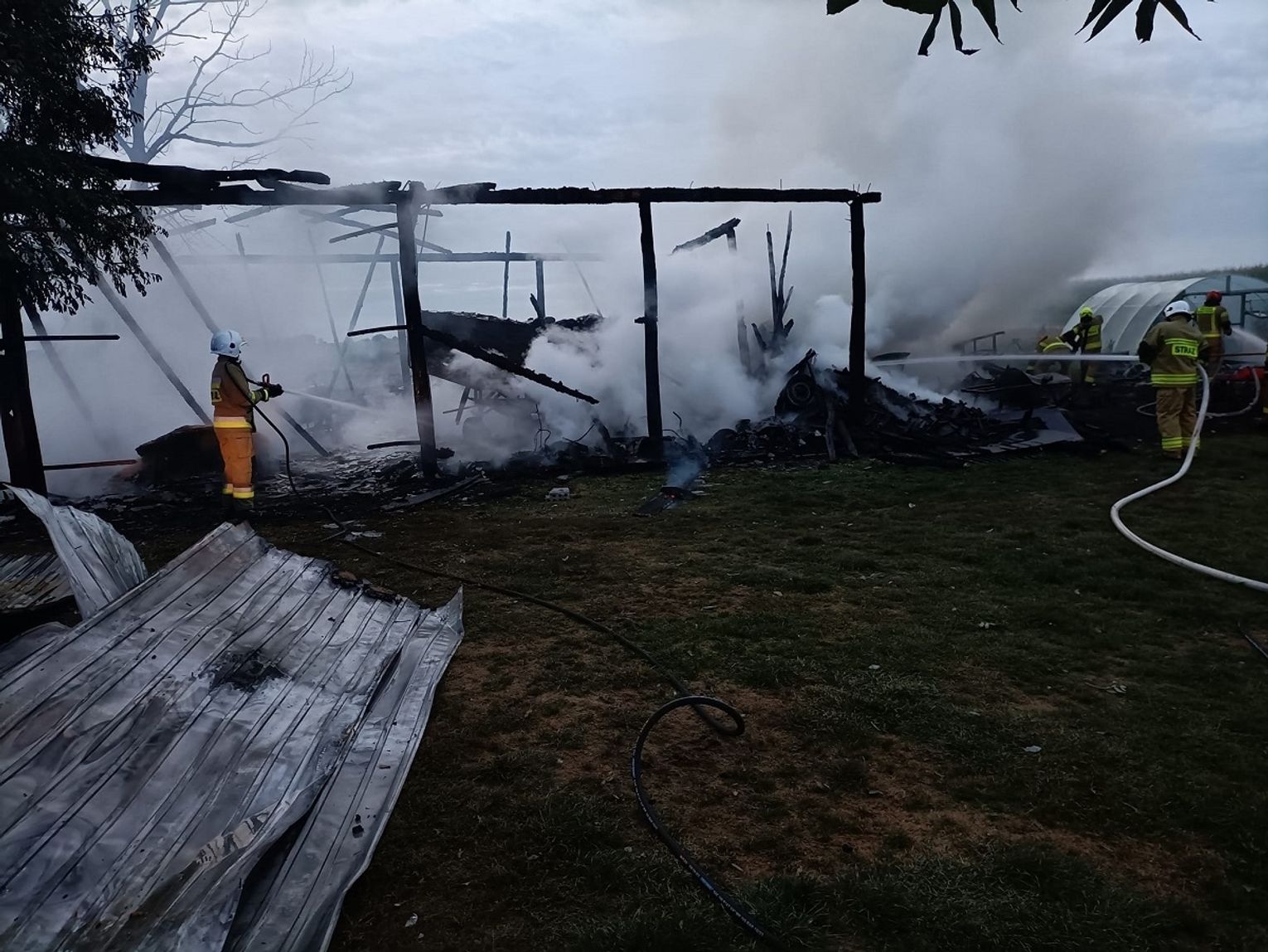 W wyniku pożaru doszczętnie spłonął budynek gospodarczy - stodoła wraz ze wszystkim, co było w środku, a były tam głównie maszyny rolnicze, m.in.: dwa siewniki, ciągnik, podajnik pszenicy, maszyna do młócenia oraz nawóz i drzewo. Straty wstępnie oszacowano na 100 tys. zł.