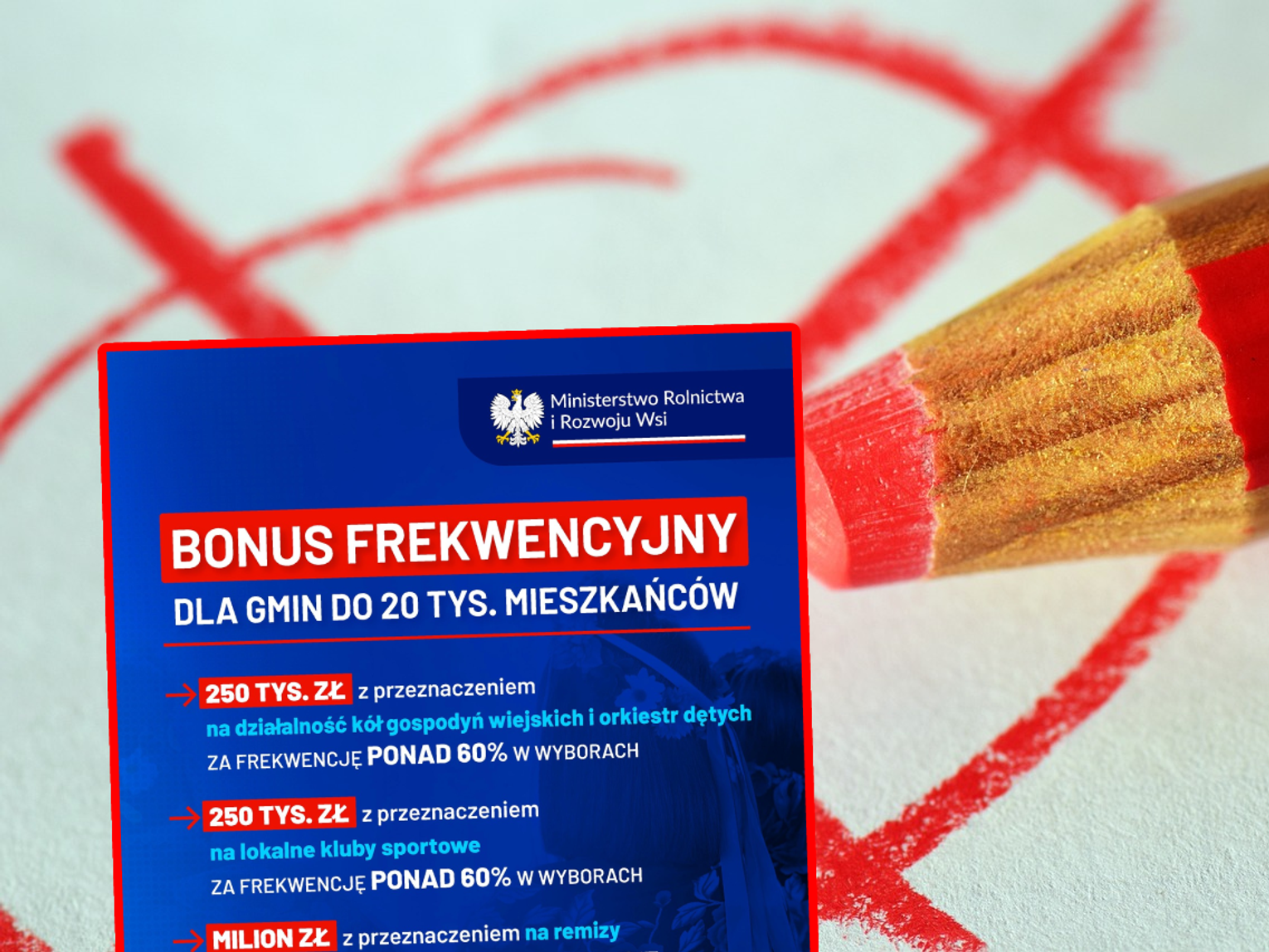 Mniejszą kwotę, 250 tys. zł, otrzymają te gminy, które wykażą się frekwencją przekraczającą 60%. Również w tym przypadku można przeznaczyć środki na dwa cele. Samorząd może np. dofinansować działalność klubów sportowych albo przeznaczyć środki na działalność kół gospodyń wiejskich i orkiestr dętych. Warto również podkreślić, że o pieniądze może starać się ten samorząd, na terenie którego nie zamieszkuje więcej niż 20 tys. mieszkańców.