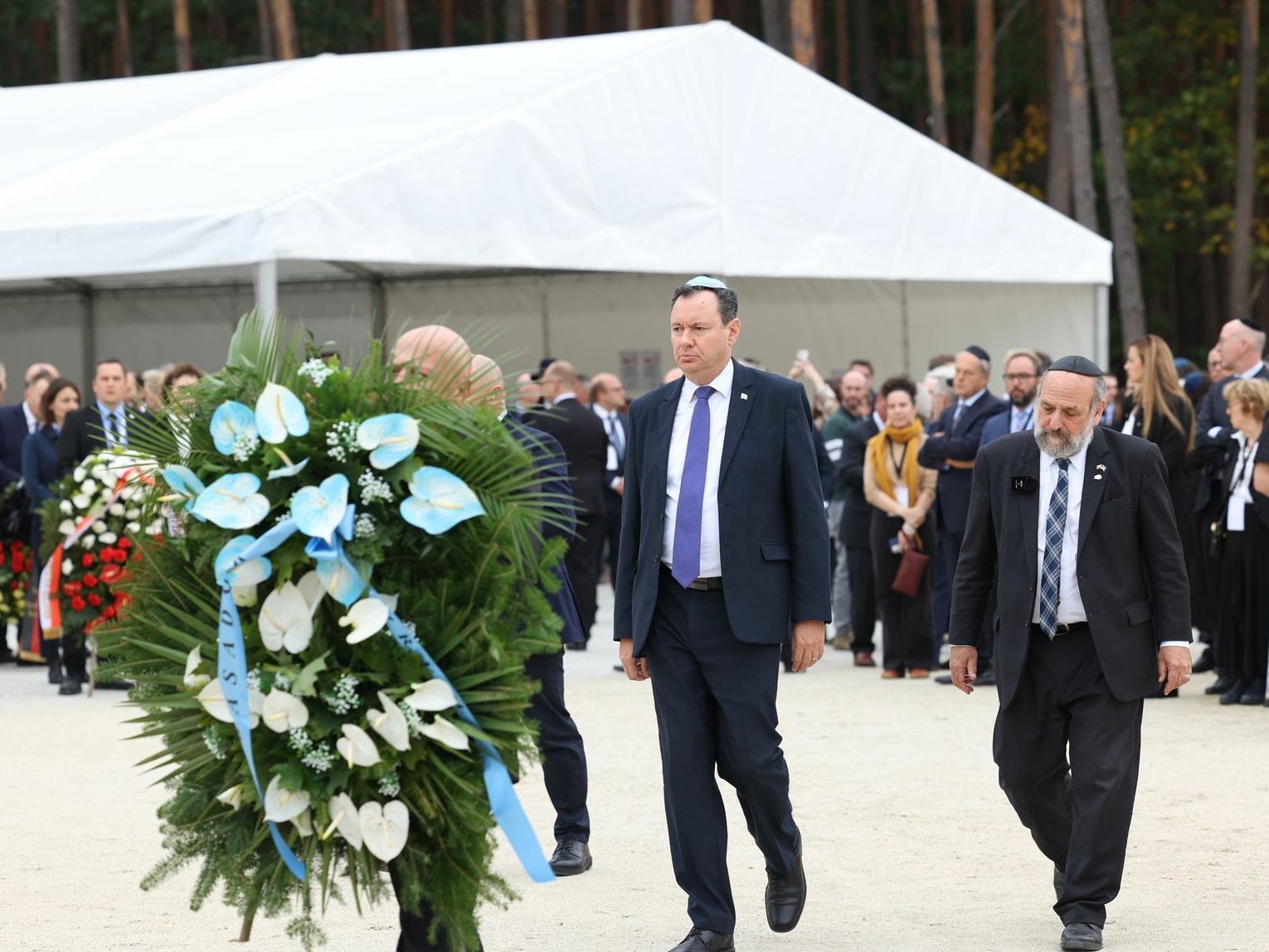 Na koniec wszyscy zgromadzeni złożyli wieńce i kwiaty przy polanie mogił, w których spoczęły prochy ofiar Sobiboru.
