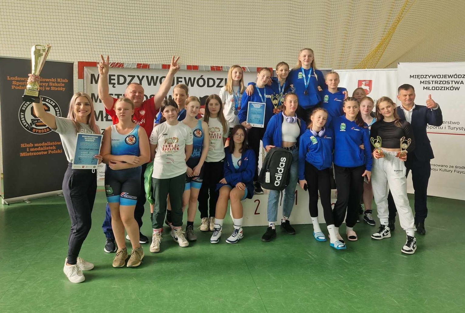 Bez żadnej porażki do najwyższego stopnia podium dotarły Emilia Budych, Roksana Sawicka i Patrycja Cieloch, srebro zdobyły siostry Oliwia i Zofia Jankowskie, a brąz Nikola Przyczyna, Klaudia Szafrańska i Maja Radelczuk. Na piątych lokatach rywalizację w Stróży zakończyły Amelia Solak, Natalia Strojna, Zofia Boraczuk i Zuzanna Ziejak, a na siódmej Julia Ostrowska.