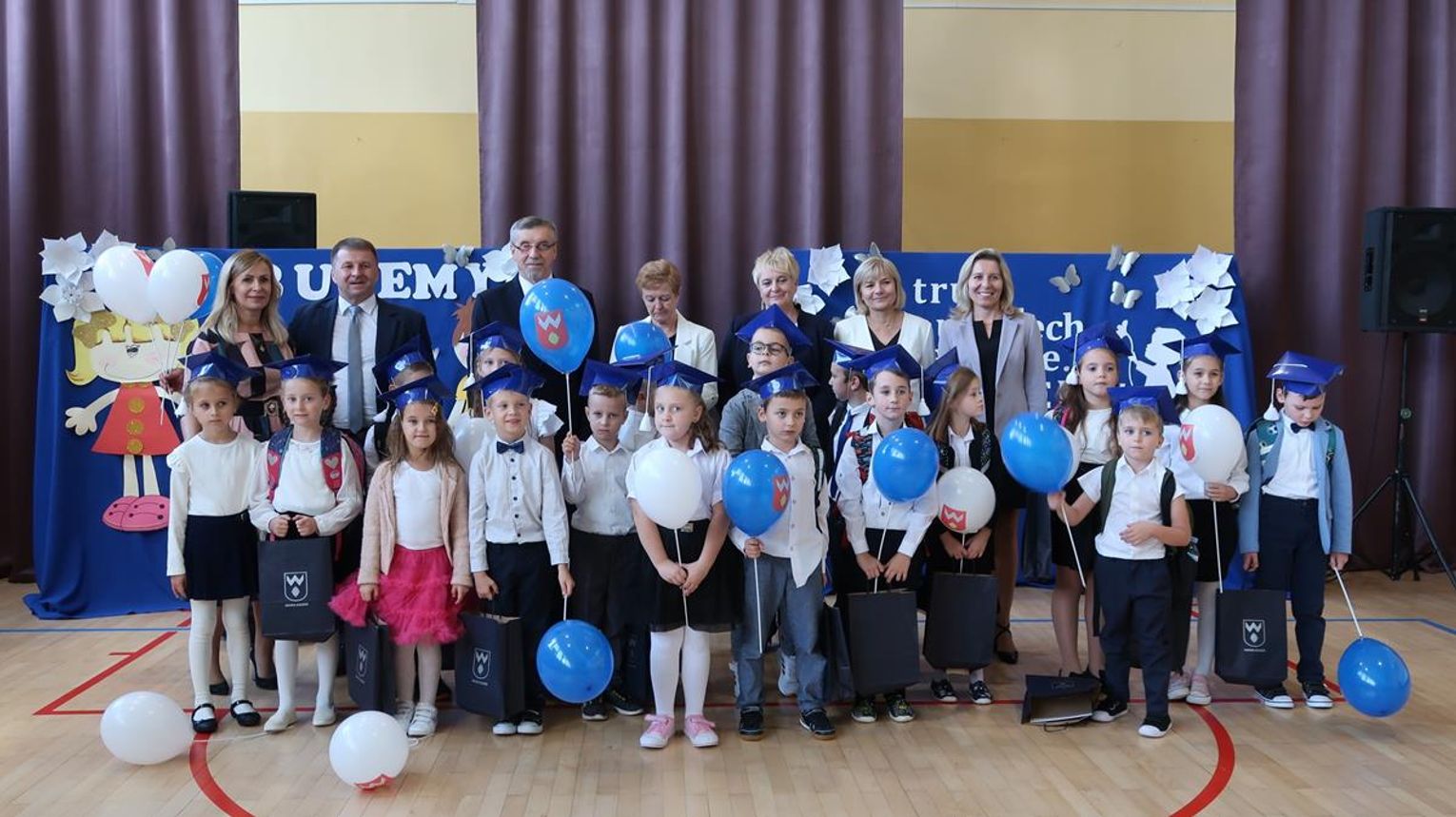 Wyróżniający się nauczyciele i pracownicy niepedagogiczni odebrali nagrody wójta i dyrektora, a pierwszoklasiści ze szkoły podstawowej w Strachosławiu złożyli ślubowanie na sztandar szkoły i zostali pasowani na uczniów.