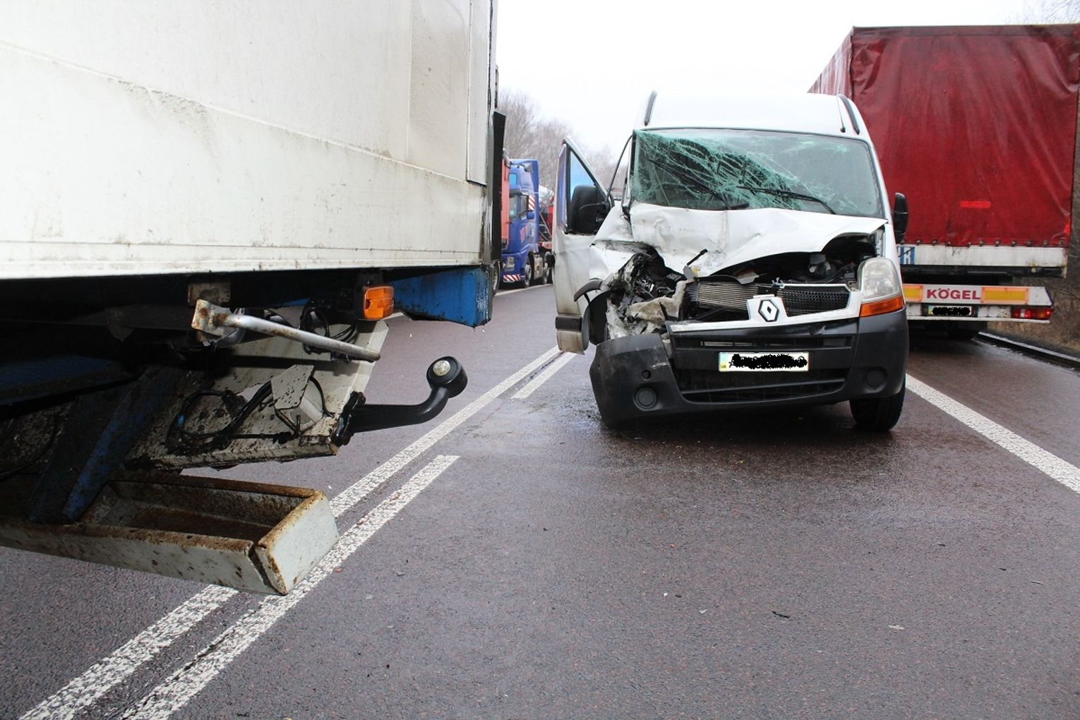 Według wstępnych ustaleń policjantów wynika, że kierowca samochodu dostawczego próbował wyprzedzić TIR-a. Uznał jednak, że nie zdoła zakończył tego manewru, więc zaczął hamować. Wtedy uderzył swoim samochodem w naczepę ciężarówki. W wyniku uderzenia, ranna została pasażerka dostawczaka.