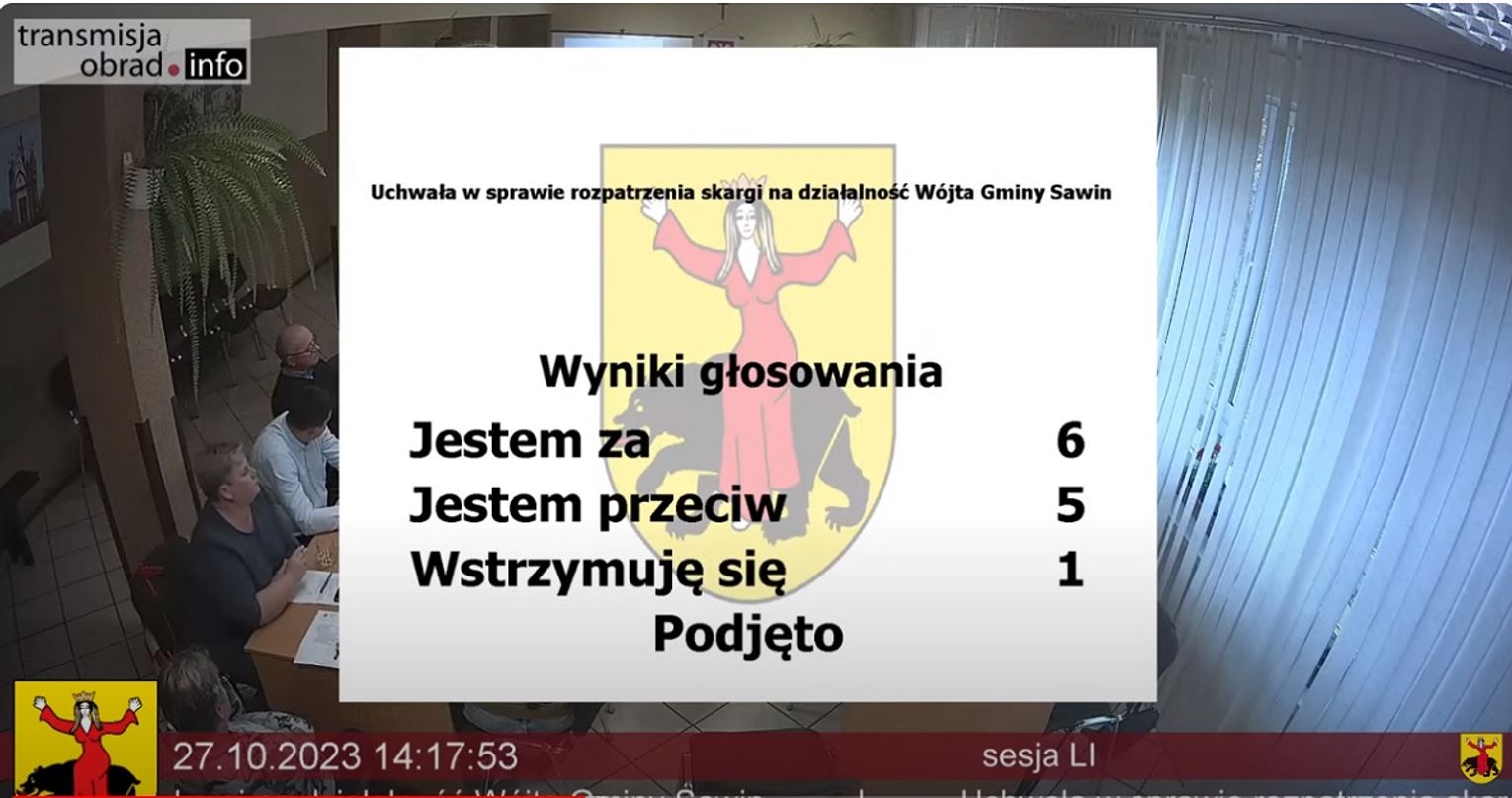 I dodała, że tak naprawdę to radni mają ocenić, czy skarga jest zasadna, czy też nie, mając na względzie ustalenia komisji skarg, wniosków i petycji. Radna Maria Kubiak-Skórzewska, wypowiadając się na temat skargi, powieliła ustalenia wójta Dariusza Ćwira i również wytknęła radnej przekroczenie terminów w przypadku niektórych uchwał. Za przyjęciem uchwały, czyli uznaniem skargi za zasadną głosowało sześciu radnych, przeciw jej przyjęciu opowiedziało się pięć osób (czyli uznały ją za bezzasadną), a jedna osoba wstrzymała się od głosu.