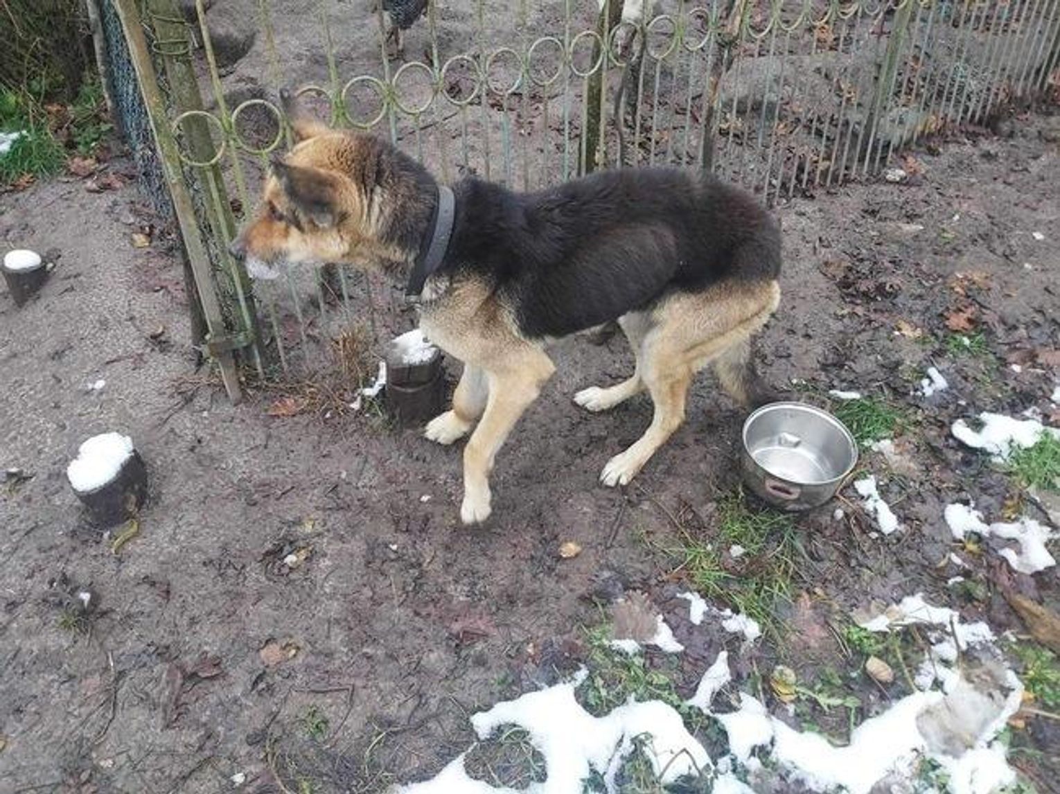 Sunia była przywiązana do ogrodzenia sznurkiem, gdyż - jak twierdzili właściciele - jest w stanie przeskoczyć przez siatkę. Niestety, nie zauważyli, że uniemożliwia on zwierzakowi wejście do "budy". Sunia nie miała schronienia, a spać mogła jedynie na brudnym i mokrym kawałku materiału. Doskwierał jej też spory obrzęk łapy, czym nikt się nie przejął. Przez ostatnich kilka, a być może nawet kilkanaście, dni "odmawiała przyjmowania pokarmu", a przynajmniej tak twierdzili jej właściciele. Patrol ocenił, że zwierzę było wyraźnie wychudzone. Na pytania o wizyty u weterynarza, właściciele milczeli lub nie mówili prawdy.