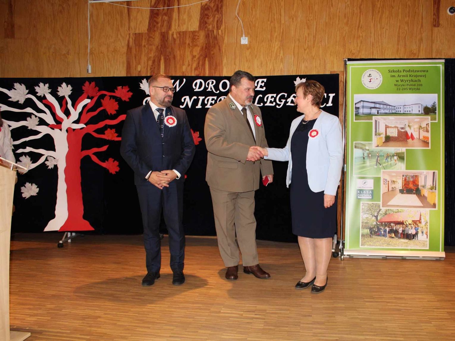 Jacek Jabłoński otrzymał także z rąk dyrektora, grona pedagogicznego i uczniów tytuł “Przyjaciela Szkoły Podstawowej im. Armii Krajowej w Wyrykach". Wyróżnienie to odebrał podczas uroczystości patriotycznych, które odbyły się w tej placówce.