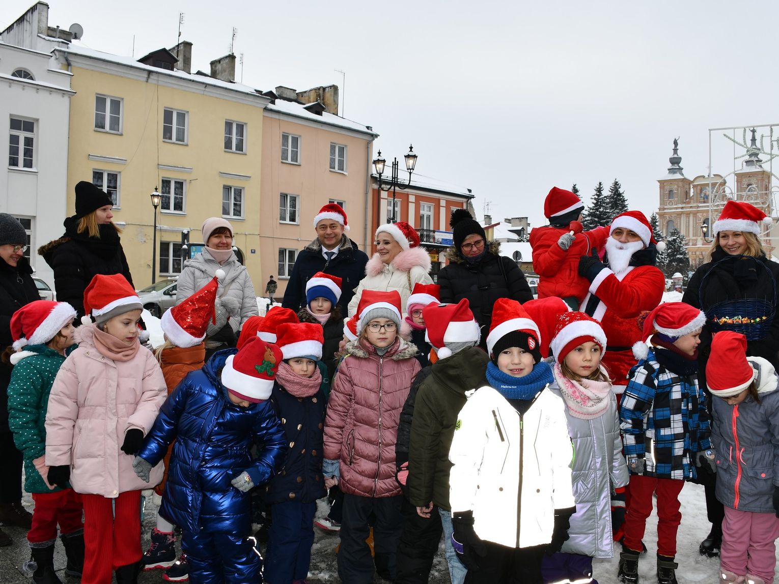 Mikołaj z burmistrzem Krasnegostawu Robertem Kościukiem tradycyjnie już przywitali dzieci uśmiechem i słodkościami.