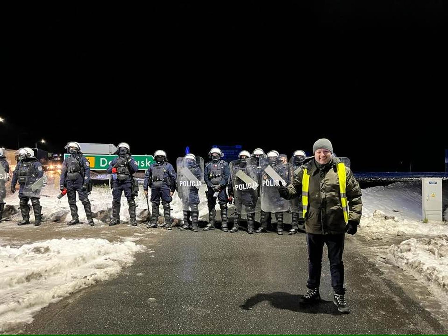 Według relacji urzędników oraz obecnej na miejscu policji, tuż po tym, jak zostali poinformowani o decyzji wójta Sawy, protestujący zaczęli się rozchodzić i zbierać swoje rzeczy. Ich „odwrót” okazał się jednak pozorny. Drogę zablokował zepsuty ciągnik siodłowy.