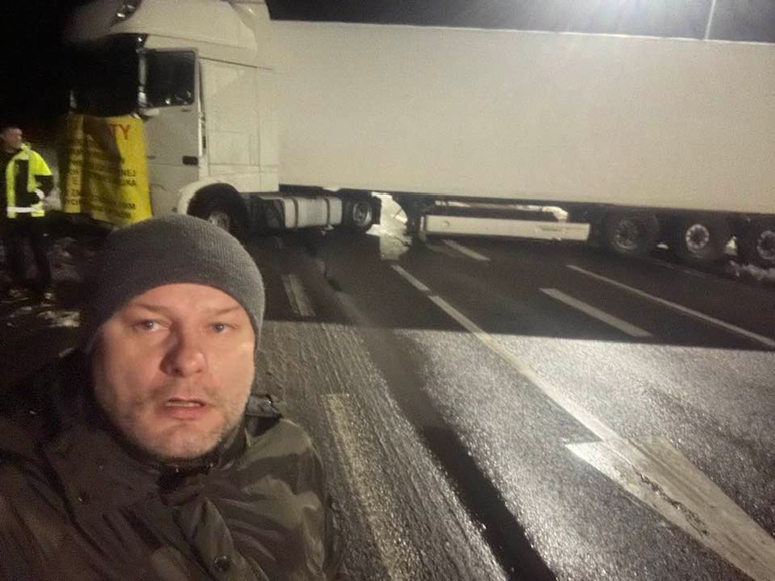 Tymczasem ruch na Dk12 jest już płynny, a ukraińskie ciężarówki powoli zmierzają w kierunku przejścia granicznego.