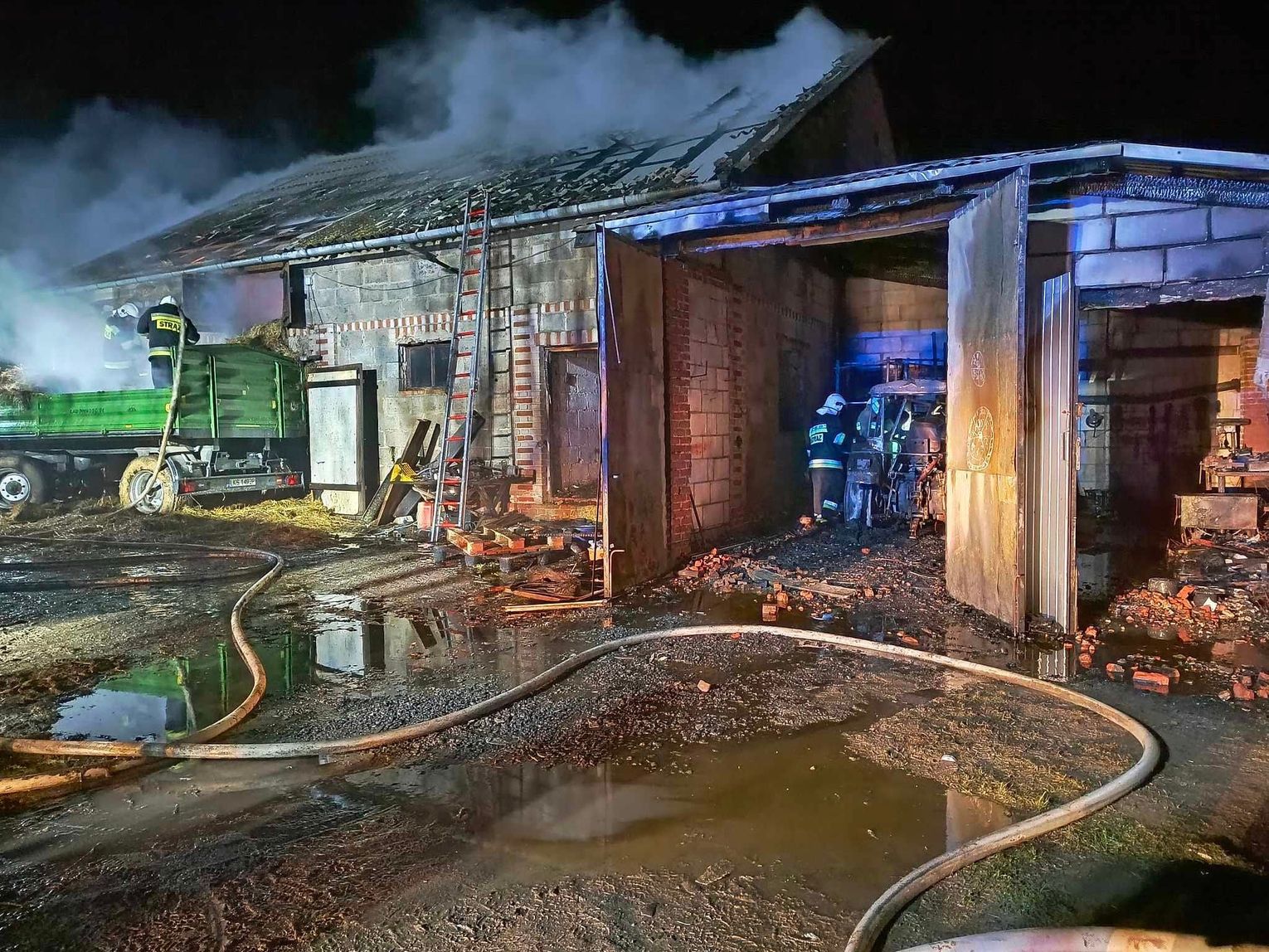 W oborze były zwierzaki – 9 cielaków - więc trzeba było je szybko ewakuować. Nie wiadomo jeszcze, jak duże są straty. Spalił się doszczętnie garaż i dach obory. Prawdopodobnie do pożaru doszło z powodu awarii piecyka stojącego w garażu.