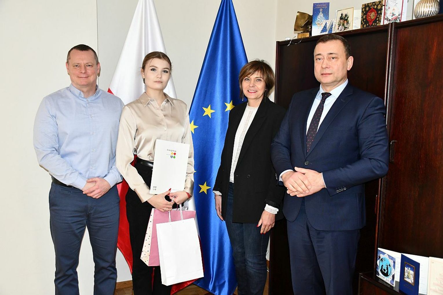 W czwartek, 4 stycznia, burmistrz Krasnegostawu Robert Kościuk, sekretarz Renata Stangryciuk i opiekun Młodzieżowej Rady Miasta Krasnystaw Marcin Wilkołazki podziękowali Justynie Wysockiej za pełnienie funkcji przewodniczącej Młodzieżowej Rady Miasta Krasnystaw VI kadencji.